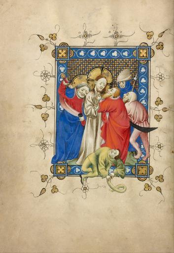 | Keywords: Masters of Dirc van Delf (Dutch, active about 1400 - about 1410) - The Betrayal of Christ - Google Art Project.jpg Within the shallow almost claustrophobic space of this miniature Judas betrays Jesus with a kiss a pre-arranged signal that alerts the Roman soldiers to Jesus' identity On the left the apostle Peter raises his sword to cut off the Roman soldier Malchus's ear Clad in bright green this small figure falls awkwardly to the ground before Jesus On the right soldiers muscle in to arrest Jesus Pushing gesturing soldiers on one side and Peter's upraised sword on the other overlap the image's frame The artist crowded the composition in this way to heighten the scene's emotion and tension Collapsed at the miniature's bottom edge the figure of Malchus plays an important role extending the pictorial space into the unpainted margin and drawing the viewer into the painting in this tiny book active about 1400 - about 1410 6826219 Masters of Dirc van Delf Dutch Dutch /collection/the-j-paul-getty-museum/artwork/the-betrayal-of-christ-masters-of-dirc-van-delf-dutch-active-about-1400-about-1410/6826218/ Masters of Dirc van Delf Dutch active about 1400 - about 1410 illuminator /artist/masters-of-dirc-van-delf/6826221/ 6826221 /collection/the-j-paul-getty-museum/ The J Paul Getty Museum 343005 http //www getty edu/museum 3/12/2012 1 42 43 PM /collection/the-j-paul-getty-museum/artwork/the-betrayal-of-christ-masters-of-dirc-van-delf-dutch-active-about-1400-about-1410/6826218/ 1405 about 1405 - 1410 Betrayal of Christ Saint Peter Judas Iscariot Tempera colors gold leaf and ink on parchment 165 6826218 True 1410 3/25/2012 9 58 17 PM lido getty edu-gm-obj1904 http //www getty edu/art/gettyguide/artObjectDetails artobj 1904 http //www getty edu/legal/copyright html Folio 1400 1420 Utrecht Netherlands Creation w117 x h165 cm about 1405 - 1410 False 0 689453125 Part the-betrayal-of-christ-masters-of-dirc-van-delf-dutch-active-about-1400-about-1410 The Betrayal of Christ b 117 Tempera colors gold leaf and ink on parchment Betrayal of Christ Saint Peter Judas Iscariot http //www getty edu/legal/copyright html special url_id VgEOB6sDJzM4iw PD-old-100 Google Art Project works by Masters of Dirc van Delf MS 40 Getty museum - Book of Hours by Masters of Dirc van Delf Miniatures of the capture of Jesus Christ |