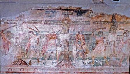 | Keywords: Matejče - The Crucifixtion.jpg mk Св Бого одица - атејче 1348-1352 Ст асен циклус Распетие en Dormition of the Theotokos Church in Matejče Macedonia 1348-1352 The Cycle of the Passion of Christ The Crucifixtion http //www kalamus com mk/pdf_spisanija/patrimonium_2/007 20Spisanie 202008 20Beti 2001 pdf Dimensio sacra За п осто ните в едности на композицијата во сликаните ансамбли на тео ијановото ателје author 1348-1352 PD-Macedonia Frescos in the Dormition of the Theotokos Church Matejče 14th-century paintings of the Crucifixion of Christ |
