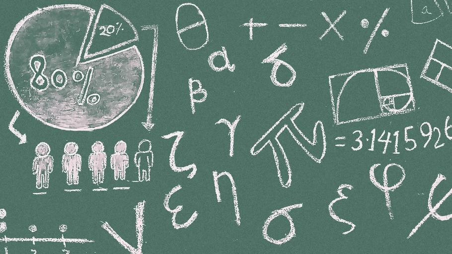 Keywords: math symbols blackboard classroom lesson pie chart greek pi exam test