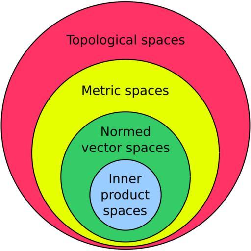 | Keywords: Mathematical Spaces.svg en A hierarchy of mathematical spaces The inner product induces a norm The norm induces a metric The metric induces a topology Own work by uploader recreation of bitmap version by en User Jhausauer Qef 2009-06-21 Original bitmap version with same layout and colours en File Mathematical_Spaces png Created in Inkscape Mathematical diagrams Basics of topology |