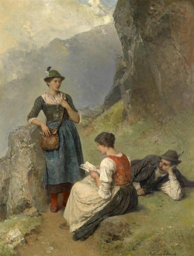| Keywords: Mathias Schmid Die Postbotin.jpg Die Postbotin Mathias Schmid signature oil on canvas 110 x 83 cm http //www dorotheum com Dorotheum by 1923 creator Mathias Schmid PD-old-70-1923 Images from Dorotheum Mathias Schmid People with letters in art Mail carriers in art Tracht in art Paintings of women sitting on the ground outdoors Paintings of sitting women reading outdoors |