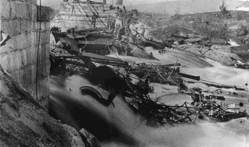 | Keywords: mattawan bridges mattawan bridges mattawanbridges trains railways aftermath wreck wreckage ontario canada history blackandwhite monochrome outdoor black and white Date: 9 June 1894 Description: This photo shows the wreckage of the Mattawan bridge and express train. Twists of debris litter the waterway whose swift current undoubtedly posed difficulties during cleanup and salvage efforts. It is possible that this photo was taken by J.F. Cooke of Port Arthur, ON. Accession No.: 972.2.185 Date: 9 June 1894 Description: This photo shows the wreckage of the Mattawan bridge and express train. Twists of debris litter the waterway whose swift current undoubtedly posed difficulties during cleanup and salvage efforts. It is possible that this photo was taken by J.F. Cooke of Port Arthur, ON. Accession No.: 972.2.185 |