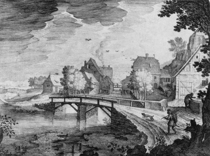 | Keywords: Matthäus Merian, Stuttgart, 012.jpg  de Blick nach Süden auf das Dorf Berg bei Stuttgart mit Mühle und Mühlkanal Radierung von Matthäus Merian um 1620/1622 130 x 170 cm “ Das im Original seitenverkehrte Bild wurde in der Abbildung gespiegelt Lucas Heinrich Wüthrich Das druckgraphische Werk von Matthaeus Merian d Ae 1 Einzelblätter und Blattfolgen Basel 1966 Abbildung 308 Matthäus Merian 1620 Vorne führt eine doppeljochige Brücke über den zum Neckar fließenden Mühlkanal Von links naht ein Mann mit Hund Rechts die Vereinigung von Mühlkanal und Neckar Hinten die Mühlgebäude Rechts oben auf dem Hügel die Alte Berger Kirche Historic views of Stuttgart Matthäus Merian ™s Engravings of Stuttgart Stuttgart-Berg PD-old-100  |