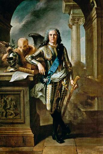 | Keywords: Maurice von Wettin.jpeg Artwork Creator unknown Portrait of male langswitch Moritz von Sachsen other date ca 1720 Oil on canvas Institution unknown 2 http //www the-athenaeum org/art/detail php ID 873931 athenaeum org<br>1 http //www lacoctelera com/retratosdelahistoria/post/2007/01/08/mauricio-sajonia-1696-1750 lacoctelera com other versions PD-old-100-1923 DEFAULTSORT Nattier Jean-Marc; Maurice de Saxe Male portrait paintings by Jean-Marc Nattier 18th-century portrait paintings location missing Maurice de Saxe Columns on pedestals in portrait paintings Military helmets in portraits Male black boots in portrait paintings Pedestals in portrait paintings Portrait paintings of men with books Portrait paintings of men with swords Sash of the Order of the White Eagle in portrait paintings Waist sashes in art 18th-century oil portraits of standing men at full length in armour |