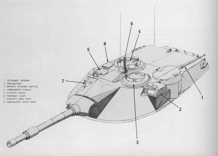 Keywords: MBT-70 turret.JPG MBT-70 turret R P Hunnicutt Abrams A history of American main battle tank Vol 2 ” Presidio Press 1990 ISBN 0-89141-388-X US Army PD-USGov-Military-Army PD-USGov MBT-70 tanks