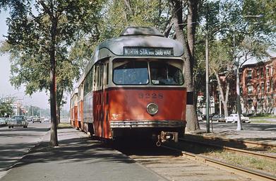 <b>A Roger Puta Photograph</b> MBTA 3228 at Strathmore Road, September 1965.jpg Two PCC streetcars inbound in September 1965 at Strathmore Road between the Cleveland Circle and Englewood Road stops The Strathmore Road stop was closed in 1982 during reconstruction work on the line https //www flickr com/photos/129679309 N05/26083143634/ MBTA PCC 3228 MUed along Beacon Street just after coming out of Cleveland Circle Terminal 1965-09-04 Roger Puta RogerPuta MBTA in 1965 PCC streetcars on the MBTA Green Line Photographs taken on 1965-09-04 Green Line C Branch Former train stations in Brookline Massachusetts Former MBTA Green Line stations Former MBTA stations in Massachusetts Railway stations closed in 1982 PCC streetcars of the MBTA Number 3228 on vehicles Flickr images uploaded by User Pi 1415926535 1982 in rail transport in the United States |