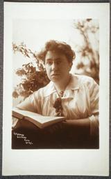 Keywords: people picture frame photo border One of three portraits of Emma Goldman. In one she leans on her elbow; in the other two she is reading., ca. 1910-1917. Photographer: Gerhard Sisters Photo Catalog Record: via.lib.harvard.edu/via/deliver/deepLink?_collection=via&... Questions? Ask a Schlesinger Librarian One of three portraits of Emma Goldman. In one she leans on her elbow; in the other two she is reading., ca. 1910-1917. Photographer: Gerhard Sisters Photo Catalog Record: via.lib.harvard.edu/via/deliver/deepLink?_collection=via&... Questions? Ask a Schlesinger Librarian |