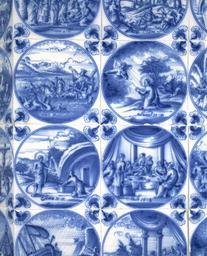 Keywords: MCC-40823 Smuiger, 278 tegels met anjers en medaillons met bijbelse voorstellingen naar Jan Luyken (2).tif Artwork nl Anonymous Amsterdam nl EEN SMUIGER MET BIJBELTEGELS NAAR JAN LUIKEN Amsterdam 1789 RMCC v127 Een smuiger is een tegelschouw waarvan de achterwand aan de bovenkant naar voren welft Dit soort schouwen treft men aan in de Zaanstreek Deze komt uit een huis van een beurtschipper in Zaandijk In de smuiger bevinden zich 278 bijbeltegels geschilderd naar de bijbelprenten uit Jan Luiken's `Schriftelijke Geschiedenissen en Gelijkenissen' Amsterdam 1712 Er zijn 108 tegels met voorstellingen uit het Oude Testament en 112 uit het Nieuwe Testament De overige 58 tegels zijn dubbelexemplaren Bij het zetten van de tegels in de schouw werd niet de volgorde van het bijbelverhaal aangehouden Mede door de gedetailleerde voorstellingen van de tegels kan deze smuiger uniek genoemd worden 1786 nl aardewerk Size 135 0 181 0 cm nl Hoogte 135 0cm Breedte 181 0cm Diepte 81 0cm Institution Museum Catharijneconvent object history exhibition history credit line nl Foto Museum Catharijneconvent Utrecht foto Ruben de Heer Reproduction title nl Detail accession number Object number 40823 Inventory number RMCC v00127 place of creation https //www catharijneconvent nl/adlib/40823/ View this work on the website of Museum Catharijneconvent Museum Catharijneconvent Cc-zero <gallery> File MCC-40823_Smuiger _278_tegels_met_anjers_en_medaillons_met_bijbelse_voorstellingen_naar_Jan_Luyken_ 2 tif File MCC-40823_Smuiger _278_tegels_met_anjers_en_medaillons_met_bijbelse_voorstellingen_naar_Jan_Luyken_ 1 tif </gallery> Ceramic tiles Jan Luyken |