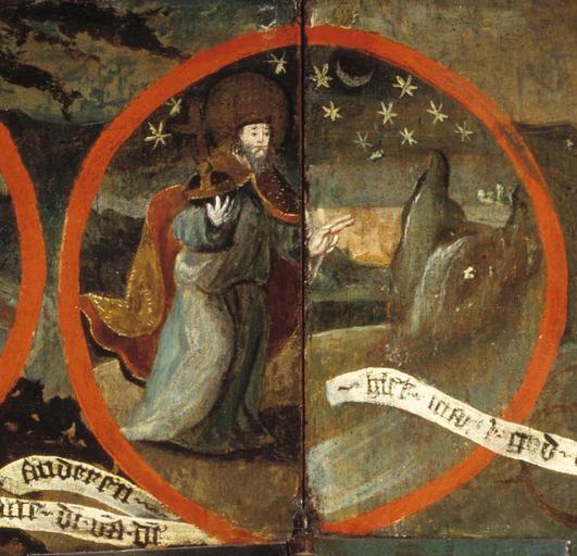 Keywords: MCC-42054 Veelluik met het martelaarschap van de H. Theodosia (76).jpg Artwork nl Anonymous Gelre nl Middenstuk 1 Theodosia verzoekt toelating tot de gevangenis Rechtsboven een engel met banderol waarop de tekst Ghi sijt verhoert die geve die ghi do bidt heb ick gevestigt mit mijnen gelt die martelie te liden 2 Theodosia wordt bij de magistraat ter verantwoording geroepen Op het tekstbord Desen s alch sal ick mitter hulpen des heren voer s en 3 Theodosia ™s marteling aan de hefboom Op het tekstbord Ic ben bereyd dinc voer iezus christo te liden 4a Theodosia aan de schandpaal 4b Theodosia ™s ledematen worden uitgerekt 5 Allegorische voorstelling Christus aan het kruis met het offerlam op zijn schouders; onder het kruis negen schapen Op de voorgrond links een non rechts koning David met een gouden kroon op zijn hoofd en een herdersstaf met schep in beide handen die hij naar de non uitsteekt; tussen hen in ligt een harp Op het tekstbord suster hoede die scapen dier gedacten in die minne des brudegoms iesus opten berch caluarie 6a Theodosia uit het water gered door twee engelen 6b Vijf nonnen en een vrouw in wereldse kledij bezoeken Theodosia in de gevangenis Op het tekstbord min medes elen in cro Christo den enge w ech Het opschrift op de lijst onder de voorstelling is onleesbaar 7 Theodosia voor de wilde dieren geworpen Op het tekstbord nu suldi bekennen hoe vol si vermogen die god mit pueren herten minnen 8 Onthoofding van Theodosia Op het tekstbord dat ic inren tiit des vreden heb vercregen dat sal ic inden striit nie verliesen 9a Verschijning van Theodosia aan haar ouders Op het tekstbord sieh hoe soet die glorie ist daer du mi af beroeven wolste 9b Begrafenis van Theodosia Een zwevende engel met banderol waarop si heft nu salighe vrocht Aan weerszijden van deze taferelen zijn vrouwelijke heiligen afgebeeld steeds twee aan twee met tussen hen in een geknielde non Op de eerste voorstelling links in plaats van een vrouwelijke heilige Maria met kind Links 10a Madonna op de maansikkel en Fides Opschriften / fides 10b Caritas en Spes Opschriften niet leesbaar 11a Agatha en Dorothea Opschriften aghata / doratea 11b Apollonia met attribuut van Agatha tang waarin in plaats van een tand een borst is geklemd en Euphrosia Opschriften appolonia / effrosia 12a Anatolia en Christina Opschriften anatolia / 12b Victoria en Sophia Opschriften victoria / sophia Rechts 13a Margaretha en Gertrudis Opschriften a gretha / gertrudis 13b Ursula en Walburga Opschriften ursula / 14a Catharina en Barbara Opschriften katrina / barbara 14b Agnes en Prisca Opschriften agneta / priska 15a Cecilia en Cunera Opschriften cecilia / cunera 15b Lucia en Clara Opschriften lucia / clara Binnenzijde linkerluiken 16 Kruisdraging met Veronica en Simon van Cyrene 17 Doornenkroning Rechts een als priester geklede heilige met een kelk in de hand en een knielende non 18 Geseling Rechts een H Bisschop 19 Christus in de Hof van Olijven en de stigmatisatie van de Franciscus 20 Besnijdenis Rechts een reguliere kanunnik en een geknielde vrouw in 16de-eeuwse kledij met de attributen van de H Goedele een lantaarn geflankeerd door een engel met een brandende kaars en een duivel met een blaasbalg; daaronder het opschrift gudila 21 Ontkleding van Christus Rechts een heilige met een boek en een ladder 22 Kruisnageling Rechts de apostel Thomas 23 Christus aan het kruis met Maria Johannes en de drie vrouwen Rechts Antonius 24 Bewening Rechts de apostel Paulus en twee geknielde nonnen 25 Christus treedt de wijnpers Links Augustinus rechts een reguliere kanunnik Binnenzijde rechterluiken 26 Aanbidding der koningen 27 Geboorte van Christus Opschrift gloria in excelsis 28a Visitatie 28b Vier nonnen knielend voor een altaar waarop een drieluik met de Kruisiging Achter hen een priester Boven diens hoofd h ia Rechts daarvan een banderol met eenregelige tekst van een lied adv i g i I Fi Filius dn domini 29 Annunciatie Opschrift ave gratia plena 30 Genadestoel Rechtsonder op de voorgrond knielt een non Op het tekstbord god die alle creatueren gescapen heft en ons mit sin dierbaren bloet verlost heft hi wil ock sin gracie geuen ge eit v an der oude naam van de stichtster-non 31 Christus verschijnt aan Maria 32 Hemelvaart van Christus 33 Kroning van Maria 34 Allegorische voorstelling God de Vader gezeten op een troon met op de trappen die naar de troon voeren links de vijf wijze rechts de vijf dwaze maagden; in het midden een engel boven de hellemond met drie verdoemden Op de banderol in de linkerhand van de engel Gae t of Myt ghi vermadi vermaledijden ; op de banderol in zijn rechterhand coemt ghi gebenedide Op het tekstbord bij de wijze maagden gaet tot der gene daer se te coop is Op het tekstbord bij de dwaze maagden geft ons den olie vor ons lamp Op de banderol aan de onderzijde van de voorstelling rick der hemelen sal worden all fiere maechden Buitenzijde linkerluiken Nr 35 36 en 40 t/m 44 zijn gewijd aan de zeven vallen van Christus De voorstellingen zijn zeer verwant aan zeven houtsneden met dit thema gedrukt op één blad getiteld ˜O mensch betracht dy siben vell Christi und dy siben herzenlaydt Marie ™ Wenen Albertina inv nr 1930-70 Zuid-Duitsland ca 1480; zie Marrow 1979 p 82 89 100 106 131 170 pl VIII 35 Christus ™ val voor de kruisnageling zesde val 36 Kruisoprichting zevende val 37 Allegorische voorstelling Christus als Man van Smarten en gebonden aan de geselpaal houdt een rood koord vast dat verbonden is met een knielende non Tekstrol Christus o dochter vollighet my want ic gepassijt bin voor di wilt mij u hert geven om ewich te leuen Tekstrol non here ic offer u myn hert nu ende inder ewicheit Achter de non zeven kleinere opschriften verwijzend naar zeven deugden elk voorafgegaan door een hand met een geselroede waarvan de eerste en de derde onleesbaar zijn 2 die mel it mildheid ; 4 gehoorsamheijt; 5 wakinge; 6 silencia ; 7 arheyt waarheid 38 Allegorische voorstelling In een ommuurde tuin slaat Christus met een hamer op 