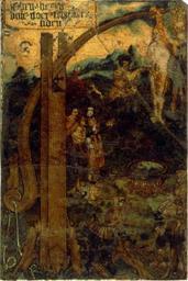 Keywords: MCC-42054 Veelluik met het martelaarschap van de H. Theodosia (11).jpg Artwork nl Anonymous Gelre nl Middenstuk 1 Theodosia verzoekt toelating tot de gevangenis Rechtsboven een engel met banderol waarop de tekst Ghi sijt verhoert die geve die ghi do bidt heb ick gevestigt mit mijnen gelt die martelie te liden 2 Theodosia wordt bij de magistraat ter verantwoording geroepen Op het tekstbord Desen s alch sal ick mitter hulpen des heren voer s en 3 Theodosia ™s marteling aan de hefboom Op het tekstbord Ic ben bereyd dinc voer iezus christo te liden 4a Theodosia aan de schandpaal 4b Theodosia ™s ledematen worden uitgerekt 5 Allegorische voorstelling Christus aan het kruis met het offerlam op zijn schouders; onder het kruis negen schapen Op de voorgrond links een non rechts koning David met een gouden kroon op zijn hoofd en een herdersstaf met schep in beide handen die hij naar de non uitsteekt; tussen hen in ligt een harp Op het tekstbord suster hoede die scapen dier gedacten in die minne des brudegoms iesus opten berch caluarie 6a Theodosia uit het water gered door twee engelen 6b Vijf nonnen en een vrouw in wereldse kledij bezoeken Theodosia in de gevangenis Op het tekstbord min medes elen in cro Christo den enge w ech Het opschrift op de lijst onder de voorstelling is onleesbaar 7 Theodosia voor de wilde dieren geworpen Op het tekstbord nu suldi bekennen hoe vol si vermogen die god mit pueren herten minnen 8 Onthoofding van Theodosia Op het tekstbord dat ic inren tiit des vreden heb vercregen dat sal ic inden striit nie verliesen 9a Verschijning van Theodosia aan haar ouders Op het tekstbord sieh hoe soet die glorie ist daer du mi af beroeven wolste 9b Begrafenis van Theodosia Een zwevende engel met banderol waarop si heft nu salighe vrocht Aan weerszijden van deze taferelen zijn vrouwelijke heiligen afgebeeld steeds twee aan twee met tussen hen in een geknielde non Op de eerste voorstelling links in plaats van een vrouwelijke heilige Maria met kind Links 10a Madonna op de maansikkel en Fides Opschriften / fides 10b Caritas en Spes Opschriften niet leesbaar 11a Agatha en Dorothea Opschriften aghata / doratea 11b Apollonia met attribuut van Agatha tang waarin in plaats van een tand een borst is geklemd en Euphrosia Opschriften appolonia / effrosia 12a Anatolia en Christina Opschriften anatolia / 12b Victoria en Sophia Opschriften victoria / sophia Rechts 13a Margaretha en Gertrudis Opschriften a gretha / gertrudis 13b Ursula en Walburga Opschriften ursula / 14a Catharina en Barbara Opschriften katrina / barbara 14b Agnes en Prisca Opschriften agneta / priska 15a Cecilia en Cunera Opschriften cecilia / cunera 15b Lucia en Clara Opschriften lucia / clara Binnenzijde linkerluiken 16 Kruisdraging met Veronica en Simon van Cyrene 17 Doornenkroning Rechts een als priester geklede heilige met een kelk in de hand en een knielende non 18 Geseling Rechts een H Bisschop 19 Christus in de Hof van Olijven en de stigmatisatie van de Franciscus 20 Besnijdenis Rechts een reguliere kanunnik en een geknielde vrouw in 16de-eeuwse kledij met de attributen van de H Goedele een lantaarn geflankeerd door een engel met een brandende kaars en een duivel met een blaasbalg; daaronder het opschrift gudila 21 Ontkleding van Christus Rechts een heilige met een boek en een ladder 22 Kruisnageling Rechts de apostel Thomas 23 Christus aan het kruis met Maria Johannes en de drie vrouwen Rechts Antonius 24 Bewening Rechts de apostel Paulus en twee geknielde nonnen 25 Christus treedt de wijnpers Links Augustinus rechts een reguliere kanunnik Binnenzijde rechterluiken 26 Aanbidding der koningen 27 Geboorte van Christus Opschrift gloria in excelsis 28a Visitatie 28b Vier nonnen knielend voor een altaar waarop een drieluik met de Kruisiging Achter hen een priester Boven diens hoofd h ia Rechts daarvan een banderol met eenregelige tekst van een lied adv i g i I Fi Filius dn domini 29 Annunciatie Opschrift ave gratia plena 30 Genadestoel Rechtsonder op de voorgrond knielt een non Op het tekstbord god die alle creatueren gescapen heft en ons mit sin dierbaren bloet verlost heft hi wil ock sin gracie geuen ge eit v an der oude naam van de stichtster-non 31 Christus verschijnt aan Maria 32 Hemelvaart van Christus 33 Kroning van Maria 34 Allegorische voorstelling God de Vader gezeten op een troon met op de trappen die naar de troon voeren links de vijf wijze rechts de vijf dwaze maagden; in het midden een engel boven de hellemond met drie verdoemden Op de banderol in de linkerhand van de engel Gae t of Myt ghi vermadi vermaledijden ; op de banderol in zijn rechterhand coemt ghi gebenedide Op het tekstbord bij de wijze maagden gaet tot der gene daer se te coop is Op het tekstbord bij de dwaze maagden geft ons den olie vor ons lamp Op de banderol aan de onderzijde van de voorstelling rick der hemelen sal worden all fiere maechden Buitenzijde linkerluiken Nr 35 36 en 40 t/m 44 zijn gewijd aan de zeven vallen van Christus De voorstellingen zijn zeer verwant aan zeven houtsneden met dit thema gedrukt op één blad getiteld ˜O mensch betracht dy siben vell Christi und dy siben herzenlaydt Marie ™ Wenen Albertina inv nr 1930-70 Zuid-Duitsland ca 1480; zie Marrow 1979 p 82 89 100 106 131 170 pl VIII 35 Christus ™ val voor de kruisnageling zesde val 36 Kruisoprichting zevende val 37 Allegorische voorstelling Christus als Man van Smarten en gebonden aan de geselpaal houdt een rood koord vast dat verbonden is met een knielende non Tekstrol Christus o dochter vollighet my want ic gepassijt bin voor di wilt mij u hert geven om ewich te leuen Tekstrol non here ic offer u myn hert nu ende inder ewicheit Achter de non zeven kleinere opschriften verwijzend naar zeven deugden elk voorafgegaan door een hand met een geselroede waarvan de eerste en de derde onleesbaar zijn 2 die mel it mildheid ; 4 gehoorsamheijt; 5 wakinge; 6 silencia ; 7 arheyt waarheid 38 Allegorische voorstelling In een ommuurde tuin slaat Christus met een hamer op 