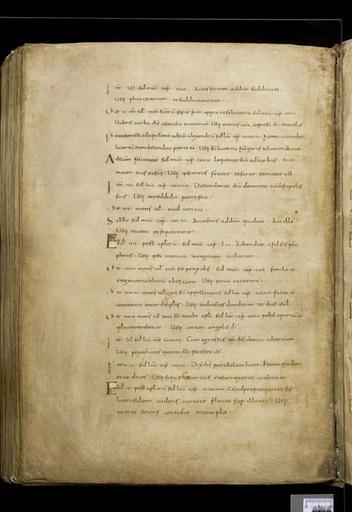 | Keywords: MCC-61050 Evangeliarium (Lebuïnuscodex) (300).jpg Artwork nl Anonymous Noordoost-Frankrijk Anonymous Rijnland Anonymous Maasland nl De kern van de boekband van de Lebuïnuscodex wordt gevormd door twee eikenhouten platten De rug en het achterplat zijn overtrokken met zeemleer Het voorplat is rijkelijk versierd met verguld zilversmeedwerk reliëfs van walrustand en verscheidene stenen De compositie van de bekleding van het voorplat wordt bepaald door een verguld zilveren filigraankruis Aan de uiteinden van de kruisarmen bevinden zich vierpassen met overhoeks vierkant eveneens met filigraan gedecoreerd Hiervan zijn er slechts twee bewaard gebleven en wel die aan de verticale kruisarmen Zij bevatten tevens nog de oorspronkelijke versiering bestaande uit een filigraanmedaillon met een pseudo-camee van respectievelijk een mannen- en een vrouwenhoofd in profiel Het snijpunt van het kruis wordt ingenomen door een ver vooruitstekend Bacchuskopje in chalcedoon te herkennen aan de kleine druiventrosjes in zijn haartooi Het kopje is gevat in een filigraanmedaillon welke op zijn beurt weer is geplaatst op een vierpas van filigraanwerk Op elk van de kruisarmen bevindt zich een ovale steen 'en cabochon' op een medaillon met filigraan Het filigraanwerk van kruis en sierstukken is in de vorm van visblazen In de ruimten tussen de kruisarmen zijn rechthoekige reliëfs van walrustand aangebracht met de vier evangelisten en hun symbool De reliëfs hebben de volgende afmetingen H 10 0 x B 5 5 cm Van links boven naar rechts onder betreft het Mattheus met de engel Johannes met de adelaar Marcus met de gevleugelde leeuw en Lucas met de gevleugelde os De figuren zijn paarsgewijs als elkaars spiegelbeeld ten opzichte van de middenas geplaatst Mattheus en Johannes zitten vrijwel geheel frontaal terwijl Marcus en Lucas meer in profiel zijn afgebeeld Qua opbouw verschillen de vier reliëfs nauwelijks van elkaar Binnen een rand van vierlobbige blaadjes verheffen zich twee zuilen met een basis een kapiteel en een dekplaat Hierop rust een rondboog geflankeerd door twee torens en afgedekt met een fronton dat boven Mattheus en Johannes boogvormig en boven Marcus en Lucas driehoekig is Onder deze overhuiving zitten de evangelisten gekleed in een lang gewaad en mantel met gekruiste benen aan een lessenaar hun blote voeten rustend op een bankje Allen zijn baardeloos en voorzien van een nimbus Voorts houden ze een pen in hun rechterhand terwijl hun linker op een boek ligt of gebarend is opgeheven Boven elk van de evangelisten verschijnt in de opening van het fronton zijn symbool met een spreukband Dit rijkelijk gedecoreerde middenveld wordt omlijst door sierbanden van verguld koper De opbouw van de sierlijsten is steeds dezelfde een opstaande smalle band die op regelmatige afstanden is voorzien van holten met aan weerszijden een brede strook voorzien van een gestanst motief Aan de lange zijden van de boekband bestaat het motief uit palmetten aan de korte zijden uit rozetten Van deze laatstgenoemde stroken ontbreekt steeds de buitenste rand Bij alle stroken met palmettenmotief wijzen de palmetten naar links met uitzondering van de buitenste strook rechtsboven die het motief in tegengestelde richting toont Verguld zilveren rozetten op de hoeken van het voorplat omgeven door een smalle rand van filigraanwerk met cirkelmotief en bekroond met een 'en cabochon' gezette steen completeren het geheel Van de rozet links onder ontbreekt de steen en is slechts de buitenste rand over Aan de voorzijde van de boekband bevinden zich nog de rudimenten van twee sluitingen between u'825' u'1000' u'1150' u'850' u'1199' u'1199' nl perkament eikenhout zilver goud koper walrustand chalcedoon glas leer Size 35 5 26 0 cm nl Hoogte 35 5cm Breedte 26 0cm Diepte 13 5cm Institution Museum Catharijneconvent object history exhibition history credit line nl Foto Museum Catharijneconvent Utrecht foto HetFotoAtelier Peter Rothengatter accession number Object number 61050 Inventory number ABM h1 place of creation https //www catharijneconvent nl/adlib/61050/ View this work on the website of Museum Catharijneconvent Museum Catharijneconvent Cc-zero <gallery> File MCC-61050_Evangeliarium_Lebuïnuscodex_ 11 jpg File MCC-61050_Evangeliarium_Lebuïnuscodex_ 172 jpg File MCC-61050_Evangeliarium_Lebuïnuscodex_ 212 jpg File MCC-61050_Evangeliarium_Lebuïnuscodex_ 61 jpg File MCC-61050_Evangeliarium_Lebuïnuscodex_ 12 jpg File MCC-61050_Evangeliarium_Lebuïnuscodex_ 213 jpg File MCC-61050_Evangeliarium_Lebuïnuscodex_ 56 jpg File MCC-61050_Evangeliarium_Lebuïnuscodex_ 232 jpg File MCC-61050_Evangeliarium_Lebuïnuscodex_ 93 jpg File MCC-61050_Evangeliarium_Lebuïnuscodex_ 99 jpg File MCC-61050_Evangeliarium_Lebuïnuscodex_ 184 jpg File MCC-61050_Evangeliarium_Lebuïnuscodex_ 64 jpg File MCC-61050_Evangeliarium_Lebuïnuscodex_ 299 jpg File MCC-61050_Evangeliarium_Lebuïnuscodex_ 86 jpg File MCC-61050_Evangeliarium_Lebuïnuscodex_ 260 jpg File MCC-61050_Evangeliarium_Lebuïnuscodex_ 159 jpg File MCC-61050_Evangeliarium_Lebuïnuscodex_ 247 jpg File MCC-61050_Evangeliarium_Lebuïnuscodex_ 180 jpg File MCC-61050_Evangeliarium_Lebuïnuscodex_ 121 jpg File MCC-61050_Evangeliarium_Lebuïnuscodex_ 315 jpg File MCC-61050_Evangeliarium_Lebuïnuscodex_ 284 jpg File MCC-61050_Evangeliarium_Lebuïnuscodex_ 33 jpg File MCC-61050_Evangeliarium_Lebuïnuscodex_ 44 jpg File MCC-61050_Evangeliarium_Lebuïnuscodex_ 258 jpg File MCC-61050_Evangeliarium_Lebuïnuscodex_ 237 jpg File MCC-61050_Evangeliarium_Lebuïnuscodex_ 20 jpg File MCC-61050_Evangeliarium_Lebuïnuscodex_ 220 jpg File MCC-61050_Evangeliarium_Lebuïnuscodex_ 279 jpg File MCC-61050_Evangeliarium_Lebuïnuscodex_ 183 jpg File MCC-61050_Evangeliarium_Lebuïnuscodex_ 60 jpg File MCC-61050_Evangeliarium_Lebuïnuscodex_ 166 jpg File MCC-61050_Evangeliarium_Lebuïnuscodex_ 97 jpg File MCC-61050_Evangeliarium_Lebuïnuscodex_ 71 jpg File MCC-61050_Evangeliarium_Lebuïnuscodex_ 132 jpg File MCC-61050_Evangeliarium_Lebuïn