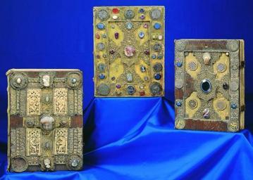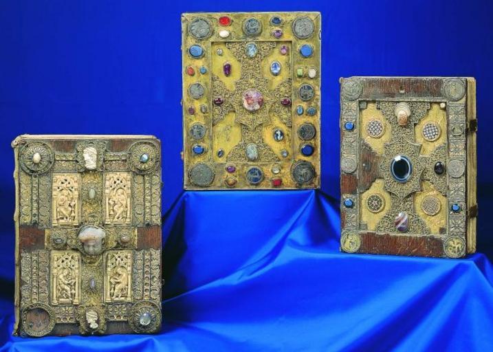 Keywords: MCC-61050 Evangeliarium (Lebuïnuscodex) (338).jpg Artwork nl Anonymous Noordoost-Frankrijk Anonymous Rijnland Anonymous Maasland nl De kern van de boekband van de Lebuïnuscodex wordt gevormd door twee eikenhouten platten De rug en het achterplat zijn overtrokken met zeemleer Het voorplat is rijkelijk versierd met verguld zilversmeedwerk reliëfs van walrustand en verscheidene stenen De compositie van de bekleding van het voorplat wordt bepaald door een verguld zilveren filigraankruis Aan de uiteinden van de kruisarmen bevinden zich vierpassen met overhoeks vierkant eveneens met filigraan gedecoreerd Hiervan zijn er slechts twee bewaard gebleven en wel die aan de verticale kruisarmen Zij bevatten tevens nog de oorspronkelijke versiering bestaande uit een filigraanmedaillon met een pseudo-camee van respectievelijk een mannen- en een vrouwenhoofd in profiel Het snijpunt van het kruis wordt ingenomen door een ver vooruitstekend Bacchuskopje in chalcedoon te herkennen aan de kleine druiventrosjes in zijn haartooi Het kopje is gevat in een filigraanmedaillon welke op zijn beurt weer is geplaatst op een vierpas van filigraanwerk Op elk van de kruisarmen bevindt zich een ovale steen 'en cabochon' op een medaillon met filigraan Het filigraanwerk van kruis en sierstukken is in de vorm van visblazen In de ruimten tussen de kruisarmen zijn rechthoekige reliëfs van walrustand aangebracht met de vier evangelisten en hun symbool De reliëfs hebben de volgende afmetingen H 10 0 x B 5 5 cm Van links boven naar rechts onder betreft het Mattheus met de engel Johannes met de adelaar Marcus met de gevleugelde leeuw en Lucas met de gevleugelde os De figuren zijn paarsgewijs als elkaars spiegelbeeld ten opzichte van de middenas geplaatst Mattheus en Johannes zitten vrijwel geheel frontaal terwijl Marcus en Lucas meer in profiel zijn afgebeeld Qua opbouw verschillen de vier reliëfs nauwelijks van elkaar Binnen een rand van vierlobbige blaadjes verheffen zich twee zuilen met een basis een kapiteel en een dekplaat Hierop rust een rondboog geflankeerd door twee torens en afgedekt met een fronton dat boven Mattheus en Johannes boogvormig en boven Marcus en Lucas driehoekig is Onder deze overhuiving zitten de evangelisten gekleed in een lang gewaad en mantel met gekruiste benen aan een lessenaar hun blote voeten rustend op een bankje Allen zijn baardeloos en voorzien van een nimbus Voorts houden ze een pen in hun rechterhand terwijl hun linker op een boek ligt of gebarend is opgeheven Boven elk van de evangelisten verschijnt in de opening van het fronton zijn symbool met een spreukband Dit rijkelijk gedecoreerde middenveld wordt omlijst door sierbanden van verguld koper De opbouw van de sierlijsten is steeds dezelfde een opstaande smalle band die op regelmatige afstanden is voorzien van holten met aan weerszijden een brede strook voorzien van een gestanst motief Aan de lange zijden van de boekband bestaat het motief uit palmetten aan de korte zijden uit rozetten Van deze laatstgenoemde stroken ontbreekt steeds de buitenste rand Bij alle stroken met palmettenmotief wijzen de palmetten naar links met uitzondering van de buitenste strook rechtsboven die het motief in tegengestelde richting toont Verguld zilveren rozetten op de hoeken van het voorplat omgeven door een smalle rand van filigraanwerk met cirkelmotief en bekroond met een 'en cabochon' gezette steen completeren het geheel Van de rozet links onder ontbreekt de steen en is slechts de buitenste rand over Aan de voorzijde van de boekband bevinden zich nog de rudimenten van twee sluitingen between u'825' u'1000' u'1150' u'850' u'1199' u'1199' nl perkament eikenhout zilver goud koper walrustand chalcedoon glas leer Size 35 5 26 0 cm nl Hoogte 35 5cm Breedte 26 0cm Diepte 13 5cm Institution Museum Catharijneconvent object history exhibition history credit line nl Foto Museum Catharijneconvent Utrecht foto HetFotoAtelier Peter Rothengatter Reproduction title nl Boekbanden van ABM h1 ABM h2 en ABM h3 accession number Object number 61050 Inventory number ABM h1 place of creation https //www catharijneconvent nl/adlib/61050/ View this work on the website of Museum Catharijneconvent Museum Catharijneconvent Cc-zero <gallery> File MCC-61050_Evangeliarium_Lebuïnuscodex_ 11 jpg File MCC-61050_Evangeliarium_Lebuïnuscodex_ 172 jpg File MCC-61050_Evangeliarium_Lebuïnuscodex_ 212 jpg File MCC-61050_Evangeliarium_Lebuïnuscodex_ 61 jpg File MCC-61050_Evangeliarium_Lebuïnuscodex_ 12 jpg File MCC-61050_Evangeliarium_Lebuïnuscodex_ 213 jpg File MCC-61050_Evangeliarium_Lebuïnuscodex_ 56 jpg File MCC-61050_Evangeliarium_Lebuïnuscodex_ 232 jpg File MCC-61050_Evangeliarium_Lebuïnuscodex_ 93 jpg File MCC-61050_Evangeliarium_Lebuïnuscodex_ 99 jpg File MCC-61050_Evangeliarium_Lebuïnuscodex_ 184 jpg File MCC-61050_Evangeliarium_Lebuïnuscodex_ 64 jpg File MCC-61050_Evangeliarium_Lebuïnuscodex_ 299 jpg File MCC-61050_Evangeliarium_Lebuïnuscodex_ 86 jpg File MCC-61050_Evangeliarium_Lebuïnuscodex_ 260 jpg File MCC-61050_Evangeliarium_Lebuïnuscodex_ 159 jpg File MCC-61050_Evangeliarium_Lebuïnuscodex_ 247 jpg File MCC-61050_Evangeliarium_Lebuïnuscodex_ 180 jpg File MCC-61050_Evangeliarium_Lebuïnuscodex_ 121 jpg File MCC-61050_Evangeliarium_Lebuïnuscodex_ 315 jpg File MCC-61050_Evangeliarium_Lebuïnuscodex_ 284 jpg File MCC-61050_Evangeliarium_Lebuïnuscodex_ 33 jpg File MCC-61050_Evangeliarium_Lebuïnuscodex_ 44 jpg File MCC-61050_Evangeliarium_Lebuïnuscodex_ 258 jpg File MCC-61050_Evangeliarium_Lebuïnuscodex_ 237 jpg File MCC-61050_Evangeliarium_Lebuïnuscodex_ 20 jpg File MCC-61050_Evangeliarium_Lebuïnuscodex_ 220 jpg File MCC-61050_Evangeliarium_Lebuïnuscodex_ 279 jpg File MCC-61050_Evangeliarium_Lebuïnuscodex_ 183 jpg File MCC-61050_Evangeliarium_Lebuïnuscodex_ 60 jpg File MCC-61050_Evangeliarium_Lebuïnuscodex_ 166 jpg File MCC-61050_Evangeliarium_Lebuïnuscodex_ 97 jpg File MCC-61050_Evangeliarium_Lebuïnuscodex_ 71 jpg File MCC-61050_Evangeliarium_L