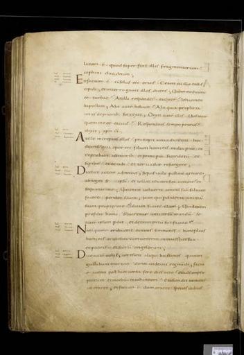 | Keywords: MCC-61050 Evangeliarium (Lebuïnuscodex) (173).jpg Artwork nl Anonymous Noordoost-Frankrijk Anonymous Rijnland Anonymous Maasland nl De kern van de boekband van de Lebuïnuscodex wordt gevormd door twee eikenhouten platten De rug en het achterplat zijn overtrokken met zeemleer Het voorplat is rijkelijk versierd met verguld zilversmeedwerk reliëfs van walrustand en verscheidene stenen De compositie van de bekleding van het voorplat wordt bepaald door een verguld zilveren filigraankruis Aan de uiteinden van de kruisarmen bevinden zich vierpassen met overhoeks vierkant eveneens met filigraan gedecoreerd Hiervan zijn er slechts twee bewaard gebleven en wel die aan de verticale kruisarmen Zij bevatten tevens nog de oorspronkelijke versiering bestaande uit een filigraanmedaillon met een pseudo-camee van respectievelijk een mannen- en een vrouwenhoofd in profiel Het snijpunt van het kruis wordt ingenomen door een ver vooruitstekend Bacchuskopje in chalcedoon te herkennen aan de kleine druiventrosjes in zijn haartooi Het kopje is gevat in een filigraanmedaillon welke op zijn beurt weer is geplaatst op een vierpas van filigraanwerk Op elk van de kruisarmen bevindt zich een ovale steen 'en cabochon' op een medaillon met filigraan Het filigraanwerk van kruis en sierstukken is in de vorm van visblazen In de ruimten tussen de kruisarmen zijn rechthoekige reliëfs van walrustand aangebracht met de vier evangelisten en hun symbool De reliëfs hebben de volgende afmetingen H 10 0 x B 5 5 cm Van links boven naar rechts onder betreft het Mattheus met de engel Johannes met de adelaar Marcus met de gevleugelde leeuw en Lucas met de gevleugelde os De figuren zijn paarsgewijs als elkaars spiegelbeeld ten opzichte van de middenas geplaatst Mattheus en Johannes zitten vrijwel geheel frontaal terwijl Marcus en Lucas meer in profiel zijn afgebeeld Qua opbouw verschillen de vier reliëfs nauwelijks van elkaar Binnen een rand van vierlobbige blaadjes verheffen zich twee zuilen met een basis een kapiteel en een dekplaat Hierop rust een rondboog geflankeerd door twee torens en afgedekt met een fronton dat boven Mattheus en Johannes boogvormig en boven Marcus en Lucas driehoekig is Onder deze overhuiving zitten de evangelisten gekleed in een lang gewaad en mantel met gekruiste benen aan een lessenaar hun blote voeten rustend op een bankje Allen zijn baardeloos en voorzien van een nimbus Voorts houden ze een pen in hun rechterhand terwijl hun linker op een boek ligt of gebarend is opgeheven Boven elk van de evangelisten verschijnt in de opening van het fronton zijn symbool met een spreukband Dit rijkelijk gedecoreerde middenveld wordt omlijst door sierbanden van verguld koper De opbouw van de sierlijsten is steeds dezelfde een opstaande smalle band die op regelmatige afstanden is voorzien van holten met aan weerszijden een brede strook voorzien van een gestanst motief Aan de lange zijden van de boekband bestaat het motief uit palmetten aan de korte zijden uit rozetten Van deze laatstgenoemde stroken ontbreekt steeds de buitenste rand Bij alle stroken met palmettenmotief wijzen de palmetten naar links met uitzondering van de buitenste strook rechtsboven die het motief in tegengestelde richting toont Verguld zilveren rozetten op de hoeken van het voorplat omgeven door een smalle rand van filigraanwerk met cirkelmotief en bekroond met een 'en cabochon' gezette steen completeren het geheel Van de rozet links onder ontbreekt de steen en is slechts de buitenste rand over Aan de voorzijde van de boekband bevinden zich nog de rudimenten van twee sluitingen between u'825' u'1000' u'1150' u'850' u'1199' u'1199' nl perkament eikenhout zilver goud koper walrustand chalcedoon glas leer Size 35 5 26 0 cm nl Hoogte 35 5cm Breedte 26 0cm Diepte 13 5cm Institution Museum Catharijneconvent object history exhibition history credit line nl Foto Museum Catharijneconvent Utrecht foto HetFotoAtelier Peter Rothengatter accession number Object number 61050 Inventory number ABM h1 place of creation https //www catharijneconvent nl/adlib/61050/ View this work on the website of Museum Catharijneconvent Museum Catharijneconvent Cc-zero <gallery> File MCC-61050_Evangeliarium_Lebuïnuscodex_ 11 jpg File MCC-61050_Evangeliarium_Lebuïnuscodex_ 172 jpg File MCC-61050_Evangeliarium_Lebuïnuscodex_ 212 jpg File MCC-61050_Evangeliarium_Lebuïnuscodex_ 61 jpg File MCC-61050_Evangeliarium_Lebuïnuscodex_ 12 jpg File MCC-61050_Evangeliarium_Lebuïnuscodex_ 213 jpg File MCC-61050_Evangeliarium_Lebuïnuscodex_ 56 jpg File MCC-61050_Evangeliarium_Lebuïnuscodex_ 232 jpg File MCC-61050_Evangeliarium_Lebuïnuscodex_ 93 jpg File MCC-61050_Evangeliarium_Lebuïnuscodex_ 99 jpg File MCC-61050_Evangeliarium_Lebuïnuscodex_ 184 jpg File MCC-61050_Evangeliarium_Lebuïnuscodex_ 64 jpg File MCC-61050_Evangeliarium_Lebuïnuscodex_ 299 jpg File MCC-61050_Evangeliarium_Lebuïnuscodex_ 86 jpg File MCC-61050_Evangeliarium_Lebuïnuscodex_ 260 jpg File MCC-61050_Evangeliarium_Lebuïnuscodex_ 159 jpg File MCC-61050_Evangeliarium_Lebuïnuscodex_ 247 jpg File MCC-61050_Evangeliarium_Lebuïnuscodex_ 180 jpg File MCC-61050_Evangeliarium_Lebuïnuscodex_ 121 jpg File MCC-61050_Evangeliarium_Lebuïnuscodex_ 315 jpg File MCC-61050_Evangeliarium_Lebuïnuscodex_ 284 jpg File MCC-61050_Evangeliarium_Lebuïnuscodex_ 33 jpg File MCC-61050_Evangeliarium_Lebuïnuscodex_ 44 jpg File MCC-61050_Evangeliarium_Lebuïnuscodex_ 258 jpg File MCC-61050_Evangeliarium_Lebuïnuscodex_ 237 jpg File MCC-61050_Evangeliarium_Lebuïnuscodex_ 20 jpg File MCC-61050_Evangeliarium_Lebuïnuscodex_ 220 jpg File MCC-61050_Evangeliarium_Lebuïnuscodex_ 279 jpg File MCC-61050_Evangeliarium_Lebuïnuscodex_ 183 jpg File MCC-61050_Evangeliarium_Lebuïnuscodex_ 60 jpg File MCC-61050_Evangeliarium_Lebuïnuscodex_ 166 jpg File MCC-61050_Evangeliarium_Lebuïnuscodex_ 97 jpg File MCC-61050_Evangeliarium_Lebuïnuscodex_ 71 jpg File MCC-61050_Evangeliarium_Lebuïnuscodex_ 132 jpg File MCC-61050_Evangeliarium_Lebuïn