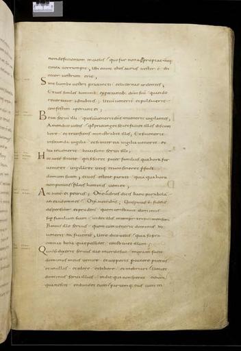 | Keywords: MCC-61050 Evangeliarium (Lebuïnuscodex) (186).jpg Artwork nl Anonymous Noordoost-Frankrijk Anonymous Rijnland Anonymous Maasland nl De kern van de boekband van de Lebuïnuscodex wordt gevormd door twee eikenhouten platten De rug en het achterplat zijn overtrokken met zeemleer Het voorplat is rijkelijk versierd met verguld zilversmeedwerk reliëfs van walrustand en verscheidene stenen De compositie van de bekleding van het voorplat wordt bepaald door een verguld zilveren filigraankruis Aan de uiteinden van de kruisarmen bevinden zich vierpassen met overhoeks vierkant eveneens met filigraan gedecoreerd Hiervan zijn er slechts twee bewaard gebleven en wel die aan de verticale kruisarmen Zij bevatten tevens nog de oorspronkelijke versiering bestaande uit een filigraanmedaillon met een pseudo-camee van respectievelijk een mannen- en een vrouwenhoofd in profiel Het snijpunt van het kruis wordt ingenomen door een ver vooruitstekend Bacchuskopje in chalcedoon te herkennen aan de kleine druiventrosjes in zijn haartooi Het kopje is gevat in een filigraanmedaillon welke op zijn beurt weer is geplaatst op een vierpas van filigraanwerk Op elk van de kruisarmen bevindt zich een ovale steen 'en cabochon' op een medaillon met filigraan Het filigraanwerk van kruis en sierstukken is in de vorm van visblazen In de ruimten tussen de kruisarmen zijn rechthoekige reliëfs van walrustand aangebracht met de vier evangelisten en hun symbool De reliëfs hebben de volgende afmetingen H 10 0 x B 5 5 cm Van links boven naar rechts onder betreft het Mattheus met de engel Johannes met de adelaar Marcus met de gevleugelde leeuw en Lucas met de gevleugelde os De figuren zijn paarsgewijs als elkaars spiegelbeeld ten opzichte van de middenas geplaatst Mattheus en Johannes zitten vrijwel geheel frontaal terwijl Marcus en Lucas meer in profiel zijn afgebeeld Qua opbouw verschillen de vier reliëfs nauwelijks van elkaar Binnen een rand van vierlobbige blaadjes verheffen zich twee zuilen met een basis een kapiteel en een dekplaat Hierop rust een rondboog geflankeerd door twee torens en afgedekt met een fronton dat boven Mattheus en Johannes boogvormig en boven Marcus en Lucas driehoekig is Onder deze overhuiving zitten de evangelisten gekleed in een lang gewaad en mantel met gekruiste benen aan een lessenaar hun blote voeten rustend op een bankje Allen zijn baardeloos en voorzien van een nimbus Voorts houden ze een pen in hun rechterhand terwijl hun linker op een boek ligt of gebarend is opgeheven Boven elk van de evangelisten verschijnt in de opening van het fronton zijn symbool met een spreukband Dit rijkelijk gedecoreerde middenveld wordt omlijst door sierbanden van verguld koper De opbouw van de sierlijsten is steeds dezelfde een opstaande smalle band die op regelmatige afstanden is voorzien van holten met aan weerszijden een brede strook voorzien van een gestanst motief Aan de lange zijden van de boekband bestaat het motief uit palmetten aan de korte zijden uit rozetten Van deze laatstgenoemde stroken ontbreekt steeds de buitenste rand Bij alle stroken met palmettenmotief wijzen de palmetten naar links met uitzondering van de buitenste strook rechtsboven die het motief in tegengestelde richting toont Verguld zilveren rozetten op de hoeken van het voorplat omgeven door een smalle rand van filigraanwerk met cirkelmotief en bekroond met een 'en cabochon' gezette steen completeren het geheel Van de rozet links onder ontbreekt de steen en is slechts de buitenste rand over Aan de voorzijde van de boekband bevinden zich nog de rudimenten van twee sluitingen between u'825' u'1000' u'1150' u'850' u'1199' u'1199' nl perkament eikenhout zilver goud koper walrustand chalcedoon glas leer Size 35 5 26 0 cm nl Hoogte 35 5cm Breedte 26 0cm Diepte 13 5cm Institution Museum Catharijneconvent object history exhibition history credit line nl Foto Museum Catharijneconvent Utrecht foto HetFotoAtelier Peter Rothengatter accession number Object number 61050 Inventory number ABM h1 place of creation https //www catharijneconvent nl/adlib/61050/ View this work on the website of Museum Catharijneconvent Museum Catharijneconvent Cc-zero <gallery> File MCC-61050_Evangeliarium_Lebuïnuscodex_ 11 jpg File MCC-61050_Evangeliarium_Lebuïnuscodex_ 172 jpg File MCC-61050_Evangeliarium_Lebuïnuscodex_ 212 jpg File MCC-61050_Evangeliarium_Lebuïnuscodex_ 61 jpg File MCC-61050_Evangeliarium_Lebuïnuscodex_ 12 jpg File MCC-61050_Evangeliarium_Lebuïnuscodex_ 213 jpg File MCC-61050_Evangeliarium_Lebuïnuscodex_ 56 jpg File MCC-61050_Evangeliarium_Lebuïnuscodex_ 232 jpg File MCC-61050_Evangeliarium_Lebuïnuscodex_ 93 jpg File MCC-61050_Evangeliarium_Lebuïnuscodex_ 99 jpg File MCC-61050_Evangeliarium_Lebuïnuscodex_ 184 jpg File MCC-61050_Evangeliarium_Lebuïnuscodex_ 64 jpg File MCC-61050_Evangeliarium_Lebuïnuscodex_ 299 jpg File MCC-61050_Evangeliarium_Lebuïnuscodex_ 86 jpg File MCC-61050_Evangeliarium_Lebuïnuscodex_ 260 jpg File MCC-61050_Evangeliarium_Lebuïnuscodex_ 159 jpg File MCC-61050_Evangeliarium_Lebuïnuscodex_ 247 jpg File MCC-61050_Evangeliarium_Lebuïnuscodex_ 180 jpg File MCC-61050_Evangeliarium_Lebuïnuscodex_ 121 jpg File MCC-61050_Evangeliarium_Lebuïnuscodex_ 315 jpg File MCC-61050_Evangeliarium_Lebuïnuscodex_ 284 jpg File MCC-61050_Evangeliarium_Lebuïnuscodex_ 33 jpg File MCC-61050_Evangeliarium_Lebuïnuscodex_ 44 jpg File MCC-61050_Evangeliarium_Lebuïnuscodex_ 258 jpg File MCC-61050_Evangeliarium_Lebuïnuscodex_ 237 jpg File MCC-61050_Evangeliarium_Lebuïnuscodex_ 20 jpg File MCC-61050_Evangeliarium_Lebuïnuscodex_ 220 jpg File MCC-61050_Evangeliarium_Lebuïnuscodex_ 279 jpg File MCC-61050_Evangeliarium_Lebuïnuscodex_ 183 jpg File MCC-61050_Evangeliarium_Lebuïnuscodex_ 60 jpg File MCC-61050_Evangeliarium_Lebuïnuscodex_ 166 jpg File MCC-61050_Evangeliarium_Lebuïnuscodex_ 97 jpg File MCC-61050_Evangeliarium_Lebuïnuscodex_ 71 jpg File MCC-61050_Evangeliarium_Lebuïnuscodex_ 132 jpg File MCC-61050_Evangeliarium_Lebuïn