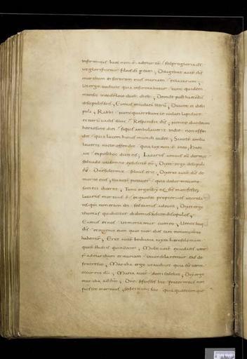 Keywords: MCC-61050 Evangeliarium (Lebuïnuscodex) (256).jpg Artwork nl Anonymous Noordoost-Frankrijk Anonymous Rijnland Anonymous Maasland nl De kern van de boekband van de Lebuïnuscodex wordt gevormd door twee eikenhouten platten De rug en het achterplat zijn overtrokken met zeemleer Het voorplat is rijkelijk versierd met verguld zilversmeedwerk reliëfs van walrustand en verscheidene stenen De compositie van de bekleding van het voorplat wordt bepaald door een verguld zilveren filigraankruis Aan de uiteinden van de kruisarmen bevinden zich vierpassen met overhoeks vierkant eveneens met filigraan gedecoreerd Hiervan zijn er slechts twee bewaard gebleven en wel die aan de verticale kruisarmen Zij bevatten tevens nog de oorspronkelijke versiering bestaande uit een filigraanmedaillon met een pseudo-camee van respectievelijk een mannen- en een vrouwenhoofd in profiel Het snijpunt van het kruis wordt ingenomen door een ver vooruitstekend Bacchuskopje in chalcedoon te herkennen aan de kleine druiventrosjes in zijn haartooi Het kopje is gevat in een filigraanmedaillon welke op zijn beurt weer is geplaatst op een vierpas van filigraanwerk Op elk van de kruisarmen bevindt zich een ovale steen 'en cabochon' op een medaillon met filigraan Het filigraanwerk van kruis en sierstukken is in de vorm van visblazen In de ruimten tussen de kruisarmen zijn rechthoekige reliëfs van walrustand aangebracht met de vier evangelisten en hun symbool De reliëfs hebben de volgende afmetingen H 10 0 x B 5 5 cm Van links boven naar rechts onder betreft het Mattheus met de engel Johannes met de adelaar Marcus met de gevleugelde leeuw en Lucas met de gevleugelde os De figuren zijn paarsgewijs als elkaars spiegelbeeld ten opzichte van de middenas geplaatst Mattheus en Johannes zitten vrijwel geheel frontaal terwijl Marcus en Lucas meer in profiel zijn afgebeeld Qua opbouw verschillen de vier reliëfs nauwelijks van elkaar Binnen een rand van vierlobbige blaadjes verheffen zich twee zuilen met een basis een kapiteel en een dekplaat Hierop rust een rondboog geflankeerd door twee torens en afgedekt met een fronton dat boven Mattheus en Johannes boogvormig en boven Marcus en Lucas driehoekig is Onder deze overhuiving zitten de evangelisten gekleed in een lang gewaad en mantel met gekruiste benen aan een lessenaar hun blote voeten rustend op een bankje Allen zijn baardeloos en voorzien van een nimbus Voorts houden ze een pen in hun rechterhand terwijl hun linker op een boek ligt of gebarend is opgeheven Boven elk van de evangelisten verschijnt in de opening van het fronton zijn symbool met een spreukband Dit rijkelijk gedecoreerde middenveld wordt omlijst door sierbanden van verguld koper De opbouw van de sierlijsten is steeds dezelfde een opstaande smalle band die op regelmatige afstanden is voorzien van holten met aan weerszijden een brede strook voorzien van een gestanst motief Aan de lange zijden van de boekband bestaat het motief uit palmetten aan de korte zijden uit rozetten Van deze laatstgenoemde stroken ontbreekt steeds de buitenste rand Bij alle stroken met palmettenmotief wijzen de palmetten naar links met uitzondering van de buitenste strook rechtsboven die het motief in tegengestelde richting toont Verguld zilveren rozetten op de hoeken van het voorplat omgeven door een smalle rand van filigraanwerk met cirkelmotief en bekroond met een 'en cabochon' gezette steen completeren het geheel Van de rozet links onder ontbreekt de steen en is slechts de buitenste rand over Aan de voorzijde van de boekband bevinden zich nog de rudimenten van twee sluitingen between u'825' u'1000' u'1150' u'850' u'1199' u'1199' nl perkament eikenhout zilver goud koper walrustand chalcedoon glas leer Size 35 5 26 0 cm nl Hoogte 35 5cm Breedte 26 0cm Diepte 13 5cm Institution Museum Catharijneconvent object history exhibition history credit line nl Foto Museum Catharijneconvent Utrecht foto HetFotoAtelier Peter Rothengatter accession number Object number 61050 Inventory number ABM h1 place of creation https //www catharijneconvent nl/adlib/61050/ View this work on the website of Museum Catharijneconvent Museum Catharijneconvent Cc-zero <gallery> File MCC-61050_Evangeliarium_Lebuïnuscodex_ 11 jpg File MCC-61050_Evangeliarium_Lebuïnuscodex_ 172 jpg File MCC-61050_Evangeliarium_Lebuïnuscodex_ 212 jpg File MCC-61050_Evangeliarium_Lebuïnuscodex_ 61 jpg File MCC-61050_Evangeliarium_Lebuïnuscodex_ 12 jpg File MCC-61050_Evangeliarium_Lebuïnuscodex_ 213 jpg File MCC-61050_Evangeliarium_Lebuïnuscodex_ 56 jpg File MCC-61050_Evangeliarium_Lebuïnuscodex_ 232 jpg File MCC-61050_Evangeliarium_Lebuïnuscodex_ 93 jpg File MCC-61050_Evangeliarium_Lebuïnuscodex_ 99 jpg File MCC-61050_Evangeliarium_Lebuïnuscodex_ 184 jpg File MCC-61050_Evangeliarium_Lebuïnuscodex_ 64 jpg File MCC-61050_Evangeliarium_Lebuïnuscodex_ 299 jpg File MCC-61050_Evangeliarium_Lebuïnuscodex_ 86 jpg File MCC-61050_Evangeliarium_Lebuïnuscodex_ 260 jpg File MCC-61050_Evangeliarium_Lebuïnuscodex_ 159 jpg File MCC-61050_Evangeliarium_Lebuïnuscodex_ 247 jpg File MCC-61050_Evangeliarium_Lebuïnuscodex_ 180 jpg File MCC-61050_Evangeliarium_Lebuïnuscodex_ 121 jpg File MCC-61050_Evangeliarium_Lebuïnuscodex_ 315 jpg File MCC-61050_Evangeliarium_Lebuïnuscodex_ 284 jpg File MCC-61050_Evangeliarium_Lebuïnuscodex_ 33 jpg File MCC-61050_Evangeliarium_Lebuïnuscodex_ 44 jpg File MCC-61050_Evangeliarium_Lebuïnuscodex_ 258 jpg File MCC-61050_Evangeliarium_Lebuïnuscodex_ 237 jpg File MCC-61050_Evangeliarium_Lebuïnuscodex_ 20 jpg File MCC-61050_Evangeliarium_Lebuïnuscodex_ 220 jpg File MCC-61050_Evangeliarium_Lebuïnuscodex_ 279 jpg File MCC-61050_Evangeliarium_Lebuïnuscodex_ 183 jpg File MCC-61050_Evangeliarium_Lebuïnuscodex_ 60 jpg File MCC-61050_Evangeliarium_Lebuïnuscodex_ 166 jpg File MCC-61050_Evangeliarium_Lebuïnuscodex_ 97 jpg File MCC-61050_Evangeliarium_Lebuïnuscodex_ 71 jpg File MCC-61050_Evangeliarium_Lebuïnuscodex_ 132 jpg File MCC-61050_Evangeliarium_Lebuïnus