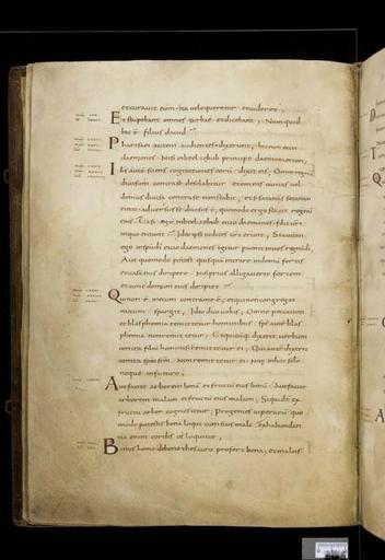 | Keywords: MCC-61050 Evangeliarium (Lebuïnuscodex) (41).jpg Artwork nl Anonymous Noordoost-Frankrijk Anonymous Rijnland Anonymous Maasland nl De kern van de boekband van de Lebuïnuscodex wordt gevormd door twee eikenhouten platten De rug en het achterplat zijn overtrokken met zeemleer Het voorplat is rijkelijk versierd met verguld zilversmeedwerk reliëfs van walrustand en verscheidene stenen De compositie van de bekleding van het voorplat wordt bepaald door een verguld zilveren filigraankruis Aan de uiteinden van de kruisarmen bevinden zich vierpassen met overhoeks vierkant eveneens met filigraan gedecoreerd Hiervan zijn er slechts twee bewaard gebleven en wel die aan de verticale kruisarmen Zij bevatten tevens nog de oorspronkelijke versiering bestaande uit een filigraanmedaillon met een pseudo-camee van respectievelijk een mannen- en een vrouwenhoofd in profiel Het snijpunt van het kruis wordt ingenomen door een ver vooruitstekend Bacchuskopje in chalcedoon te herkennen aan de kleine druiventrosjes in zijn haartooi Het kopje is gevat in een filigraanmedaillon welke op zijn beurt weer is geplaatst op een vierpas van filigraanwerk Op elk van de kruisarmen bevindt zich een ovale steen 'en cabochon' op een medaillon met filigraan Het filigraanwerk van kruis en sierstukken is in de vorm van visblazen In de ruimten tussen de kruisarmen zijn rechthoekige reliëfs van walrustand aangebracht met de vier evangelisten en hun symbool De reliëfs hebben de volgende afmetingen H 10 0 x B 5 5 cm Van links boven naar rechts onder betreft het Mattheus met de engel Johannes met de adelaar Marcus met de gevleugelde leeuw en Lucas met de gevleugelde os De figuren zijn paarsgewijs als elkaars spiegelbeeld ten opzichte van de middenas geplaatst Mattheus en Johannes zitten vrijwel geheel frontaal terwijl Marcus en Lucas meer in profiel zijn afgebeeld Qua opbouw verschillen de vier reliëfs nauwelijks van elkaar Binnen een rand van vierlobbige blaadjes verheffen zich twee zuilen met een basis een kapiteel en een dekplaat Hierop rust een rondboog geflankeerd door twee torens en afgedekt met een fronton dat boven Mattheus en Johannes boogvormig en boven Marcus en Lucas driehoekig is Onder deze overhuiving zitten de evangelisten gekleed in een lang gewaad en mantel met gekruiste benen aan een lessenaar hun blote voeten rustend op een bankje Allen zijn baardeloos en voorzien van een nimbus Voorts houden ze een pen in hun rechterhand terwijl hun linker op een boek ligt of gebarend is opgeheven Boven elk van de evangelisten verschijnt in de opening van het fronton zijn symbool met een spreukband Dit rijkelijk gedecoreerde middenveld wordt omlijst door sierbanden van verguld koper De opbouw van de sierlijsten is steeds dezelfde een opstaande smalle band die op regelmatige afstanden is voorzien van holten met aan weerszijden een brede strook voorzien van een gestanst motief Aan de lange zijden van de boekband bestaat het motief uit palmetten aan de korte zijden uit rozetten Van deze laatstgenoemde stroken ontbreekt steeds de buitenste rand Bij alle stroken met palmettenmotief wijzen de palmetten naar links met uitzondering van de buitenste strook rechtsboven die het motief in tegengestelde richting toont Verguld zilveren rozetten op de hoeken van het voorplat omgeven door een smalle rand van filigraanwerk met cirkelmotief en bekroond met een 'en cabochon' gezette steen completeren het geheel Van de rozet links onder ontbreekt de steen en is slechts de buitenste rand over Aan de voorzijde van de boekband bevinden zich nog de rudimenten van twee sluitingen between u'825' u'1000' u'1150' u'850' u'1199' u'1199' nl perkament eikenhout zilver goud koper walrustand chalcedoon glas leer Size 35 5 26 0 cm nl Hoogte 35 5cm Breedte 26 0cm Diepte 13 5cm Institution Museum Catharijneconvent object history exhibition history credit line nl Foto Museum Catharijneconvent Utrecht foto HetFotoAtelier Peter Rothengatter accession number Object number 61050 Inventory number ABM h1 place of creation https //www catharijneconvent nl/adlib/61050/ View this work on the website of Museum Catharijneconvent Museum Catharijneconvent Cc-zero <gallery> File MCC-61050_Evangeliarium_Lebuïnuscodex_ 11 jpg File MCC-61050_Evangeliarium_Lebuïnuscodex_ 172 jpg File MCC-61050_Evangeliarium_Lebuïnuscodex_ 212 jpg File MCC-61050_Evangeliarium_Lebuïnuscodex_ 61 jpg File MCC-61050_Evangeliarium_Lebuïnuscodex_ 12 jpg File MCC-61050_Evangeliarium_Lebuïnuscodex_ 213 jpg File MCC-61050_Evangeliarium_Lebuïnuscodex_ 56 jpg File MCC-61050_Evangeliarium_Lebuïnuscodex_ 232 jpg File MCC-61050_Evangeliarium_Lebuïnuscodex_ 93 jpg File MCC-61050_Evangeliarium_Lebuïnuscodex_ 99 jpg File MCC-61050_Evangeliarium_Lebuïnuscodex_ 184 jpg File MCC-61050_Evangeliarium_Lebuïnuscodex_ 64 jpg File MCC-61050_Evangeliarium_Lebuïnuscodex_ 299 jpg File MCC-61050_Evangeliarium_Lebuïnuscodex_ 86 jpg File MCC-61050_Evangeliarium_Lebuïnuscodex_ 260 jpg File MCC-61050_Evangeliarium_Lebuïnuscodex_ 159 jpg File MCC-61050_Evangeliarium_Lebuïnuscodex_ 247 jpg File MCC-61050_Evangeliarium_Lebuïnuscodex_ 180 jpg File MCC-61050_Evangeliarium_Lebuïnuscodex_ 121 jpg File MCC-61050_Evangeliarium_Lebuïnuscodex_ 315 jpg File MCC-61050_Evangeliarium_Lebuïnuscodex_ 284 jpg File MCC-61050_Evangeliarium_Lebuïnuscodex_ 33 jpg File MCC-61050_Evangeliarium_Lebuïnuscodex_ 44 jpg File MCC-61050_Evangeliarium_Lebuïnuscodex_ 258 jpg File MCC-61050_Evangeliarium_Lebuïnuscodex_ 237 jpg File MCC-61050_Evangeliarium_Lebuïnuscodex_ 20 jpg File MCC-61050_Evangeliarium_Lebuïnuscodex_ 220 jpg File MCC-61050_Evangeliarium_Lebuïnuscodex_ 279 jpg File MCC-61050_Evangeliarium_Lebuïnuscodex_ 183 jpg File MCC-61050_Evangeliarium_Lebuïnuscodex_ 60 jpg File MCC-61050_Evangeliarium_Lebuïnuscodex_ 166 jpg File MCC-61050_Evangeliarium_Lebuïnuscodex_ 97 jpg File MCC-61050_Evangeliarium_Lebuïnuscodex_ 71 jpg File MCC-61050_Evangeliarium_Lebuïnuscodex_ 132 jpg File MCC-61050_Evangeliarium_Lebuïnu