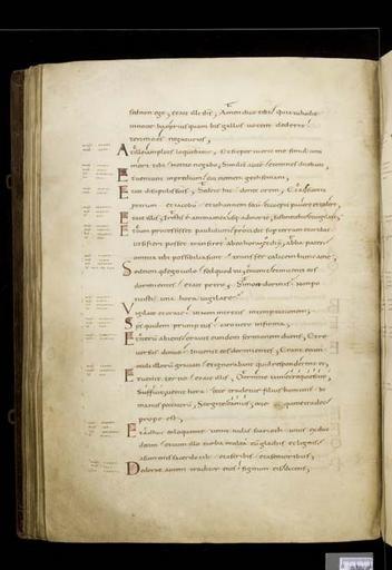 | Keywords: MCC-61050 Evangeliarium (Lebuïnuscodex) (132).jpg Artwork nl Anonymous Noordoost-Frankrijk Anonymous Rijnland Anonymous Maasland nl De kern van de boekband van de Lebuïnuscodex wordt gevormd door twee eikenhouten platten De rug en het achterplat zijn overtrokken met zeemleer Het voorplat is rijkelijk versierd met verguld zilversmeedwerk reliëfs van walrustand en verscheidene stenen De compositie van de bekleding van het voorplat wordt bepaald door een verguld zilveren filigraankruis Aan de uiteinden van de kruisarmen bevinden zich vierpassen met overhoeks vierkant eveneens met filigraan gedecoreerd Hiervan zijn er slechts twee bewaard gebleven en wel die aan de verticale kruisarmen Zij bevatten tevens nog de oorspronkelijke versiering bestaande uit een filigraanmedaillon met een pseudo-camee van respectievelijk een mannen- en een vrouwenhoofd in profiel Het snijpunt van het kruis wordt ingenomen door een ver vooruitstekend Bacchuskopje in chalcedoon te herkennen aan de kleine druiventrosjes in zijn haartooi Het kopje is gevat in een filigraanmedaillon welke op zijn beurt weer is geplaatst op een vierpas van filigraanwerk Op elk van de kruisarmen bevindt zich een ovale steen 'en cabochon' op een medaillon met filigraan Het filigraanwerk van kruis en sierstukken is in de vorm van visblazen In de ruimten tussen de kruisarmen zijn rechthoekige reliëfs van walrustand aangebracht met de vier evangelisten en hun symbool De reliëfs hebben de volgende afmetingen H 10 0 x B 5 5 cm Van links boven naar rechts onder betreft het Mattheus met de engel Johannes met de adelaar Marcus met de gevleugelde leeuw en Lucas met de gevleugelde os De figuren zijn paarsgewijs als elkaars spiegelbeeld ten opzichte van de middenas geplaatst Mattheus en Johannes zitten vrijwel geheel frontaal terwijl Marcus en Lucas meer in profiel zijn afgebeeld Qua opbouw verschillen de vier reliëfs nauwelijks van elkaar Binnen een rand van vierlobbige blaadjes verheffen zich twee zuilen met een basis een kapiteel en een dekplaat Hierop rust een rondboog geflankeerd door twee torens en afgedekt met een fronton dat boven Mattheus en Johannes boogvormig en boven Marcus en Lucas driehoekig is Onder deze overhuiving zitten de evangelisten gekleed in een lang gewaad en mantel met gekruiste benen aan een lessenaar hun blote voeten rustend op een bankje Allen zijn baardeloos en voorzien van een nimbus Voorts houden ze een pen in hun rechterhand terwijl hun linker op een boek ligt of gebarend is opgeheven Boven elk van de evangelisten verschijnt in de opening van het fronton zijn symbool met een spreukband Dit rijkelijk gedecoreerde middenveld wordt omlijst door sierbanden van verguld koper De opbouw van de sierlijsten is steeds dezelfde een opstaande smalle band die op regelmatige afstanden is voorzien van holten met aan weerszijden een brede strook voorzien van een gestanst motief Aan de lange zijden van de boekband bestaat het motief uit palmetten aan de korte zijden uit rozetten Van deze laatstgenoemde stroken ontbreekt steeds de buitenste rand Bij alle stroken met palmettenmotief wijzen de palmetten naar links met uitzondering van de buitenste strook rechtsboven die het motief in tegengestelde richting toont Verguld zilveren rozetten op de hoeken van het voorplat omgeven door een smalle rand van filigraanwerk met cirkelmotief en bekroond met een 'en cabochon' gezette steen completeren het geheel Van de rozet links onder ontbreekt de steen en is slechts de buitenste rand over Aan de voorzijde van de boekband bevinden zich nog de rudimenten van twee sluitingen between u'825' u'1000' u'1150' u'850' u'1199' u'1199' nl perkament eikenhout zilver goud koper walrustand chalcedoon glas leer Size 35 5 26 0 cm nl Hoogte 35 5cm Breedte 26 0cm Diepte 13 5cm Institution Museum Catharijneconvent object history exhibition history credit line nl Foto Museum Catharijneconvent Utrecht foto HetFotoAtelier Peter Rothengatter accession number Object number 61050 Inventory number ABM h1 place of creation https //www catharijneconvent nl/adlib/61050/ View this work on the website of Museum Catharijneconvent Museum Catharijneconvent Cc-zero <gallery> File MCC-61050_Evangeliarium_Lebuïnuscodex_ 11 jpg File MCC-61050_Evangeliarium_Lebuïnuscodex_ 172 jpg File MCC-61050_Evangeliarium_Lebuïnuscodex_ 212 jpg File MCC-61050_Evangeliarium_Lebuïnuscodex_ 61 jpg File MCC-61050_Evangeliarium_Lebuïnuscodex_ 12 jpg File MCC-61050_Evangeliarium_Lebuïnuscodex_ 213 jpg File MCC-61050_Evangeliarium_Lebuïnuscodex_ 56 jpg File MCC-61050_Evangeliarium_Lebuïnuscodex_ 232 jpg File MCC-61050_Evangeliarium_Lebuïnuscodex_ 93 jpg File MCC-61050_Evangeliarium_Lebuïnuscodex_ 99 jpg File MCC-61050_Evangeliarium_Lebuïnuscodex_ 184 jpg File MCC-61050_Evangeliarium_Lebuïnuscodex_ 64 jpg File MCC-61050_Evangeliarium_Lebuïnuscodex_ 299 jpg File MCC-61050_Evangeliarium_Lebuïnuscodex_ 86 jpg File MCC-61050_Evangeliarium_Lebuïnuscodex_ 260 jpg File MCC-61050_Evangeliarium_Lebuïnuscodex_ 159 jpg File MCC-61050_Evangeliarium_Lebuïnuscodex_ 247 jpg File MCC-61050_Evangeliarium_Lebuïnuscodex_ 180 jpg File MCC-61050_Evangeliarium_Lebuïnuscodex_ 121 jpg File MCC-61050_Evangeliarium_Lebuïnuscodex_ 315 jpg File MCC-61050_Evangeliarium_Lebuïnuscodex_ 284 jpg File MCC-61050_Evangeliarium_Lebuïnuscodex_ 33 jpg File MCC-61050_Evangeliarium_Lebuïnuscodex_ 44 jpg File MCC-61050_Evangeliarium_Lebuïnuscodex_ 258 jpg File MCC-61050_Evangeliarium_Lebuïnuscodex_ 237 jpg File MCC-61050_Evangeliarium_Lebuïnuscodex_ 20 jpg File MCC-61050_Evangeliarium_Lebuïnuscodex_ 220 jpg File MCC-61050_Evangeliarium_Lebuïnuscodex_ 279 jpg File MCC-61050_Evangeliarium_Lebuïnuscodex_ 183 jpg File MCC-61050_Evangeliarium_Lebuïnuscodex_ 60 jpg File MCC-61050_Evangeliarium_Lebuïnuscodex_ 166 jpg File MCC-61050_Evangeliarium_Lebuïnuscodex_ 97 jpg File MCC-61050_Evangeliarium_Lebuïnuscodex_ 71 jpg File MCC-61050_Evangeliarium_Lebuïnuscodex_ 132 jpg File MCC-61050_Evangeliarium_Lebuïn