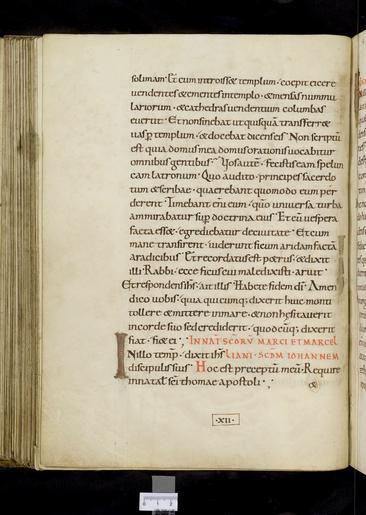 | Keywords: MCC-61090 Evangelistarium (Ansfriduscodex) (196).tif Artwork nl Anonymous Neder-Rijn Anonymous St Gallen OSB nl De kern van de boekband van de Ansfriduscodex wordt gevormd door twee eikenhouten platten Het voorplat bestaat uit een verdiept middenveld omgeven door een brede rand Het is beslagen met dunne verguld zilveren platen In het middenveld bevindt zich een verguld zilveren kruis met een verhoogd ingezwenkt achtkantig middenstuk en breed uitlopende armen Het kruis is versierd met filigraan en vijf halfedelstenen te weten een ronde steen van amethist en kornalijn op het snijpunt van de beide kruisarmen een lichtblauwe kwarts respectievelijk een agaat op de brede uiteinden van de verticale kruisarmen en twee nog niet nader bestemde stenen op de horizontale kruisarmen Het filigraanwerk bestaat uit cirkelvormige uitwaaierende ranken met bolletjes aan de uiteinden en in het midden hier en daar kleine rozetjes In de vier velden tussen de kruisarmen zijn steeds twee stenen in een diagonale lijn geplaatst Van boven naar beneden en van links naar rechts betreft het bergkristal en amethist amethist en kwarts kwarts de andere steen is verloren gegaan kwarts en amethist De brede rand rond het verdiepte middenveld is eveneens rijkelijk versierd Op de hoeken zijn geƫmailleerde medaillons met de evangelistensymbolen aangebracht De banderol die de figuren dragen vermeldt de naam van de evangelist Van links boven naar rechts onder betreft het de adelaar van Johannes de gevleugelde mens van Mattheus de gevleugelde leeuw van Marcus en de gevleugelde stier van Lucas Tussen de grote medaillons verdeeld over de lange en korte zijden van de rand bevinden zich zes kleinere geƫmailleerde medaillons Hiervan vormen de bovenste twee op de lange zijden tezamen de kroning van Maria links de gekroonde Moeder Gods en rechts de zegenende Christus Eronder bevinden zich twee medaillons waarop met wierookvaten zwaaiende engelen Op de korte zijden tonen de twee medaillons een afbeelding van een opspringend hert Op de rand bevinden zich verder nog vier alsengemmen met gegraveerde primitieve figuurtjes en zestien halfedelstenen waaronder kwarts amethist bergkristal jaspis en een lagensteen niccolo genaamd Zeven van deze stenen zijn voorzien van een gegraveerde mythologische voorstelling Zie Snijder 1932 voor een gedetailleerde beschrijving van de stenen en voorstellingen De rode rechthoekige jaspis in de onderrand bevat een koefische inscriptie die betekent 'Stel uw vertrouwen in Allah en zoek contact met den heer der getrouwen' Alle sierstukken alsmede de armen en de acht segmenten van het middenstuk van het kruis zijn omlijst met gedraaid gouddraad De rug en het achterplat zijn overtrokken met van oorsprong rood fluweel met rozenmotief Op het achterplat zijn vijf gegraveerde zilveren stukken aangebracht te weten vier ronde medaillons op de hoeken en in het midden een amandelvormige plaquette met een afbeelding van een bisschop omgeven door een rand met palmettenmotief In de buitenste rand staat de volgende Latijnse tekst gegraveerd ORNATU LAPIDUM RUTILANS AUROQUE POLITUM / PRAESULIS ANSFRIDI MARTINO MUNUS OBIVI vert 'versierd met flonkerende edelstenen en schitterend goud ben ik het boek een geschenk van bisschop Ansfridus aan Martinus de Utrechtse Martinuskerk' between u'950' u'1000' u'1000' u'1499' nl perkament eikenhout zilver goud kwarts amethist glas kornalijn bergkristal niccolo jaspis agaat fluweel Size 34 0 26 5 cm nl Hoogte 34 0cm Breedte 26 5cm Diepte 10 0cm Institution Museum Catharijneconvent object history exhibition history credit line nl Foto Museum Catharijneconvent Utrecht foto HetFotoAtelier Peter Rothengatter accession number Object number 61090 Inventory number ABM h2 place of creation https //www catharijneconvent nl/adlib/61090/ View this work on the website of Museum Catharijneconvent Museum Catharijneconvent Cc-zero <gallery> File MCC-61090_Evangelistarium_Ansfriduscodex_ 319 tif File MCC-61090_Evangelistarium_Ansfriduscodex_ 157 tif File MCC-61090_Evangelistarium_Ansfriduscodex_ 103 tif File MCC-61090_Evangelistarium_Ansfriduscodex_ 279 tif File MCC-61090_Evangelistarium_Ansfriduscodex_ 250 tif File MCC-61090_Evangelistarium_Ansfriduscodex_ 104 tif File MCC-61090_Evangelistarium_Ansfriduscodex_ 96 tif File MCC-61090_Evangelistarium_Ansfriduscodex_ 276 tif File MCC-61090_Evangelistarium_Ansfriduscodex_ 114 tif File MCC-61090_Evangelistarium_Ansfriduscodex_ 233 tif File MCC-61090_Evangelistarium_Ansfriduscodex_ 195 tif File MCC-61090_Evangelistarium_Ansfriduscodex_ 261 tif File MCC-61090_Evangelistarium_Ansfriduscodex_ 73 tif File MCC-61090_Evangelistarium_Ansfriduscodex_ 105 tif File MCC-61090_Evangelistarium_Ansfriduscodex_ 40 tif File MCC-61090_Evangelistarium_Ansfriduscodex_ 231 tif File MCC-61090_Evangelistarium_Ansfriduscodex_ 48 tif File MCC-61090_Evangelistarium_Ansfriduscodex_ 43 tif File MCC-61090_Evangelistarium_Ansfriduscodex_ 50 tif File MCC-61090_Evangelistarium_Ansfriduscodex_ 1 tif File MCC-61090_Evangelistarium_Ansfriduscodex_ 198 tif File MCC-61090_Evangelistarium_Ansfriduscodex_ 144 tif File MCC-61090_Evangelistarium_Ansfriduscodex_ 293 tif File MCC-61090_Evangelistarium_Ansfriduscodex_ 109 tif File MCC-61090_Evangelistarium_Ansfriduscodex_ 318 tif File MCC-61090_Evangelistarium_Ansfriduscodex_ 254 tif File MCC-61090_Evangelistarium_Ansfriduscodex_ 301 tif File MCC-61090_Evangelistarium_Ansfriduscodex_ 107 tif File MCC-61090_Evangelistarium_Ansfriduscodex_ 284 tif File MCC-61090_Evangelistarium_Ansfriduscodex_ 251 tif File MCC-61090_Evangelistarium_Ansfriduscodex_ 121 tif File MCC-61090_Evangelistarium_Ansfriduscodex_ 172 tif File MCC-61090_Evangelistarium_Ansfriduscodex_ 213 tif File MCC-61090_Evangelistarium_Ansfriduscodex_ 264 tif File MCC-61090_Evangelistarium_Ansfriduscodex_ 118 tif File MCC-61090_Evangelistarium_Ansfriduscodex_ 90 tif File MCC-61090_Evangelistarium_Ansfriduscodex_ 287 tif File MCC-61090_Evangelistarium_Ansfriduscodex_ 260 tif File MCC-61090_E