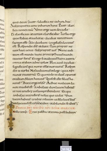 Keywords: MCC-61090 Evangelistarium (Ansfriduscodex) (109).tif Artwork nl Anonymous Neder-Rijn Anonymous St Gallen OSB nl De kern van de boekband van de Ansfriduscodex wordt gevormd door twee eikenhouten platten Het voorplat bestaat uit een verdiept middenveld omgeven door een brede rand Het is beslagen met dunne verguld zilveren platen In het middenveld bevindt zich een verguld zilveren kruis met een verhoogd ingezwenkt achtkantig middenstuk en breed uitlopende armen Het kruis is versierd met filigraan en vijf halfedelstenen te weten een ronde steen van amethist en kornalijn op het snijpunt van de beide kruisarmen een lichtblauwe kwarts respectievelijk een agaat op de brede uiteinden van de verticale kruisarmen en twee nog niet nader bestemde stenen op de horizontale kruisarmen Het filigraanwerk bestaat uit cirkelvormige uitwaaierende ranken met bolletjes aan de uiteinden en in het midden hier en daar kleine rozetjes In de vier velden tussen de kruisarmen zijn steeds twee stenen in een diagonale lijn geplaatst Van boven naar beneden en van links naar rechts betreft het bergkristal en amethist amethist en kwarts kwarts de andere steen is verloren gegaan kwarts en amethist De brede rand rond het verdiepte middenveld is eveneens rijkelijk versierd Op de hoeken zijn geƫmailleerde medaillons met de evangelistensymbolen aangebracht De banderol die de figuren dragen vermeldt de naam van de evangelist Van links boven naar rechts onder betreft het de adelaar van Johannes de gevleugelde mens van Mattheus de gevleugelde leeuw van Marcus en de gevleugelde stier van Lucas Tussen de grote medaillons verdeeld over de lange en korte zijden van de rand bevinden zich zes kleinere geƫmailleerde medaillons Hiervan vormen de bovenste twee op de lange zijden tezamen de kroning van Maria links de gekroonde Moeder Gods en rechts de zegenende Christus Eronder bevinden zich twee medaillons waarop met wierookvaten zwaaiende engelen Op de korte zijden tonen de twee medaillons een afbeelding van een opspringend hert Op de rand bevinden zich verder nog vier alsengemmen met gegraveerde primitieve figuurtjes en zestien halfedelstenen waaronder kwarts amethist bergkristal jaspis en een lagensteen niccolo genaamd Zeven van deze stenen zijn voorzien van een gegraveerde mythologische voorstelling Zie Snijder 1932 voor een gedetailleerde beschrijving van de stenen en voorstellingen De rode rechthoekige jaspis in de onderrand bevat een koefische inscriptie die betekent 'Stel uw vertrouwen in Allah en zoek contact met den heer der getrouwen' Alle sierstukken alsmede de armen en de acht segmenten van het middenstuk van het kruis zijn omlijst met gedraaid gouddraad De rug en het achterplat zijn overtrokken met van oorsprong rood fluweel met rozenmotief Op het achterplat zijn vijf gegraveerde zilveren stukken aangebracht te weten vier ronde medaillons op de hoeken en in het midden een amandelvormige plaquette met een afbeelding van een bisschop omgeven door een rand met palmettenmotief In de buitenste rand staat de volgende Latijnse tekst gegraveerd ORNATU LAPIDUM RUTILANS AUROQUE POLITUM / PRAESULIS ANSFRIDI MARTINO MUNUS OBIVI vert 'versierd met flonkerende edelstenen en schitterend goud ben ik het boek een geschenk van bisschop Ansfridus aan Martinus de Utrechtse Martinuskerk' between u'950' u'1000' u'1000' u'1499' nl perkament eikenhout zilver goud kwarts amethist glas kornalijn bergkristal niccolo jaspis agaat fluweel Size 34 0 26 5 cm nl Hoogte 34 0cm Breedte 26 5cm Diepte 10 0cm Institution Museum Catharijneconvent object history exhibition history credit line nl Foto Museum Catharijneconvent Utrecht foto HetFotoAtelier Peter Rothengatter accession number Object number 61090 Inventory number ABM h2 place of creation https //www catharijneconvent nl/adlib/61090/ View this work on the website of Museum Catharijneconvent Museum Catharijneconvent Cc-zero <gallery> File MCC-61090_Evangelistarium_Ansfriduscodex_ 319 tif File MCC-61090_Evangelistarium_Ansfriduscodex_ 157 tif File MCC-61090_Evangelistarium_Ansfriduscodex_ 103 tif File MCC-61090_Evangelistarium_Ansfriduscodex_ 279 tif File MCC-61090_Evangelistarium_Ansfriduscodex_ 250 tif File MCC-61090_Evangelistarium_Ansfriduscodex_ 104 tif File MCC-61090_Evangelistarium_Ansfriduscodex_ 96 tif File MCC-61090_Evangelistarium_Ansfriduscodex_ 276 tif File MCC-61090_Evangelistarium_Ansfriduscodex_ 114 tif File MCC-61090_Evangelistarium_Ansfriduscodex_ 233 tif File MCC-61090_Evangelistarium_Ansfriduscodex_ 195 tif File MCC-61090_Evangelistarium_Ansfriduscodex_ 261 tif File MCC-61090_Evangelistarium_Ansfriduscodex_ 73 tif File MCC-61090_Evangelistarium_Ansfriduscodex_ 105 tif File MCC-61090_Evangelistarium_Ansfriduscodex_ 40 tif File MCC-61090_Evangelistarium_Ansfriduscodex_ 231 tif File MCC-61090_Evangelistarium_Ansfriduscodex_ 48 tif File MCC-61090_Evangelistarium_Ansfriduscodex_ 43 tif File MCC-61090_Evangelistarium_Ansfriduscodex_ 50 tif File MCC-61090_Evangelistarium_Ansfriduscodex_ 1 tif File MCC-61090_Evangelistarium_Ansfriduscodex_ 198 tif File MCC-61090_Evangelistarium_Ansfriduscodex_ 144 tif File MCC-61090_Evangelistarium_Ansfriduscodex_ 293 tif File MCC-61090_Evangelistarium_Ansfriduscodex_ 109 tif File MCC-61090_Evangelistarium_Ansfriduscodex_ 318 tif File MCC-61090_Evangelistarium_Ansfriduscodex_ 254 tif File MCC-61090_Evangelistarium_Ansfriduscodex_ 301 tif File MCC-61090_Evangelistarium_Ansfriduscodex_ 107 tif File MCC-61090_Evangelistarium_Ansfriduscodex_ 284 tif File MCC-61090_Evangelistarium_Ansfriduscodex_ 251 tif File MCC-61090_Evangelistarium_Ansfriduscodex_ 121 tif File MCC-61090_Evangelistarium_Ansfriduscodex_ 172 tif File MCC-61090_Evangelistarium_Ansfriduscodex_ 213 tif File MCC-61090_Evangelistarium_Ansfriduscodex_ 264 tif File MCC-61090_Evangelistarium_Ansfriduscodex_ 118 tif File MCC-61090_Evangelistarium_Ansfriduscodex_ 90 tif File MCC-61090_Evangelistarium_Ansfriduscodex_ 287 tif File MCC-61090_Evangelistarium_Ansfriduscodex_ 260 tif File MCC-61090_Eva