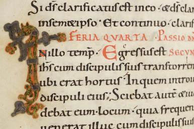Keywords: MCC-61090 Evangelistarium (Ansfriduscodex) (320).tif Artwork nl Anonymous Neder-Rijn Anonymous St Gallen OSB nl De kern van de boekband van de Ansfriduscodex wordt gevormd door twee eikenhouten platten Het voorplat bestaat uit een verdiept middenveld omgeven door een brede rand Het is beslagen met dunne verguld zilveren platen In het middenveld bevindt zich een verguld zilveren kruis met een verhoogd ingezwenkt achtkantig middenstuk en breed uitlopende armen Het kruis is versierd met filigraan en vijf halfedelstenen te weten een ronde steen van amethist en kornalijn op het snijpunt van de beide kruisarmen een lichtblauwe kwarts respectievelijk een agaat op de brede uiteinden van de verticale kruisarmen en twee nog niet nader bestemde stenen op de horizontale kruisarmen Het filigraanwerk bestaat uit cirkelvormige uitwaaierende ranken met bolletjes aan de uiteinden en in het midden hier en daar kleine rozetjes In de vier velden tussen de kruisarmen zijn steeds twee stenen in een diagonale lijn geplaatst Van boven naar beneden en van links naar rechts betreft het bergkristal en amethist amethist en kwarts kwarts de andere steen is verloren gegaan kwarts en amethist De brede rand rond het verdiepte middenveld is eveneens rijkelijk versierd Op de hoeken zijn geƫmailleerde medaillons met de evangelistensymbolen aangebracht De banderol die de figuren dragen vermeldt de naam van de evangelist Van links boven naar rechts onder betreft het de adelaar van Johannes de gevleugelde mens van Mattheus de gevleugelde leeuw van Marcus en de gevleugelde stier van Lucas Tussen de grote medaillons verdeeld over de lange en korte zijden van de rand bevinden zich zes kleinere geƫmailleerde medaillons Hiervan vormen de bovenste twee op de lange zijden tezamen de kroning van Maria links de gekroonde Moeder Gods en rechts de zegenende Christus Eronder bevinden zich twee medaillons waarop met wierookvaten zwaaiende engelen Op de korte zijden tonen de twee medaillons een afbeelding van een opspringend hert Op de rand bevinden zich verder nog vier alsengemmen met gegraveerde primitieve figuurtjes en zestien halfedelstenen waaronder kwarts amethist bergkristal jaspis en een lagensteen niccolo genaamd Zeven van deze stenen zijn voorzien van een gegraveerde mythologische voorstelling Zie Snijder 1932 voor een gedetailleerde beschrijving van de stenen en voorstellingen De rode rechthoekige jaspis in de onderrand bevat een koefische inscriptie die betekent 'Stel uw vertrouwen in Allah en zoek contact met den heer der getrouwen' Alle sierstukken alsmede de armen en de acht segmenten van het middenstuk van het kruis zijn omlijst met gedraaid gouddraad De rug en het achterplat zijn overtrokken met van oorsprong rood fluweel met rozenmotief Op het achterplat zijn vijf gegraveerde zilveren stukken aangebracht te weten vier ronde medaillons op de hoeken en in het midden een amandelvormige plaquette met een afbeelding van een bisschop omgeven door een rand met palmettenmotief In de buitenste rand staat de volgende Latijnse tekst gegraveerd ORNATU LAPIDUM RUTILANS AUROQUE POLITUM / PRAESULIS ANSFRIDI MARTINO MUNUS OBIVI vert 'versierd met flonkerende edelstenen en schitterend goud ben ik het boek een geschenk van bisschop Ansfridus aan Martinus de Utrechtse Martinuskerk' between u'950' u'1000' u'1000' u'1499' nl perkament eikenhout zilver goud kwarts amethist glas kornalijn bergkristal niccolo jaspis agaat fluweel Size 34 0 26 5 cm nl Hoogte 34 0cm Breedte 26 5cm Diepte 10 0cm Institution Museum Catharijneconvent object history exhibition history credit line nl Foto Museum Catharijneconvent Utrecht foto HetFotoAtelier Peter Rothengatter accession number Object number 61090 Inventory number ABM h2 place of creation https //www catharijneconvent nl/adlib/61090/ View this work on the website of Museum Catharijneconvent Museum Catharijneconvent Cc-zero <gallery> File MCC-61090_Evangelistarium_Ansfriduscodex_ 319 tif File MCC-61090_Evangelistarium_Ansfriduscodex_ 157 tif File MCC-61090_Evangelistarium_Ansfriduscodex_ 103 tif File MCC-61090_Evangelistarium_Ansfriduscodex_ 279 tif File MCC-61090_Evangelistarium_Ansfriduscodex_ 250 tif File MCC-61090_Evangelistarium_Ansfriduscodex_ 104 tif File MCC-61090_Evangelistarium_Ansfriduscodex_ 96 tif File MCC-61090_Evangelistarium_Ansfriduscodex_ 276 tif File MCC-61090_Evangelistarium_Ansfriduscodex_ 114 tif File MCC-61090_Evangelistarium_Ansfriduscodex_ 233 tif File MCC-61090_Evangelistarium_Ansfriduscodex_ 195 tif File MCC-61090_Evangelistarium_Ansfriduscodex_ 261 tif File MCC-61090_Evangelistarium_Ansfriduscodex_ 73 tif File MCC-61090_Evangelistarium_Ansfriduscodex_ 105 tif File MCC-61090_Evangelistarium_Ansfriduscodex_ 40 tif File MCC-61090_Evangelistarium_Ansfriduscodex_ 231 tif File MCC-61090_Evangelistarium_Ansfriduscodex_ 48 tif File MCC-61090_Evangelistarium_Ansfriduscodex_ 43 tif File MCC-61090_Evangelistarium_Ansfriduscodex_ 50 tif File MCC-61090_Evangelistarium_Ansfriduscodex_ 1 tif File MCC-61090_Evangelistarium_Ansfriduscodex_ 198 tif File MCC-61090_Evangelistarium_Ansfriduscodex_ 144 tif File MCC-61090_Evangelistarium_Ansfriduscodex_ 293 tif File MCC-61090_Evangelistarium_Ansfriduscodex_ 109 tif File MCC-61090_Evangelistarium_Ansfriduscodex_ 318 tif File MCC-61090_Evangelistarium_Ansfriduscodex_ 254 tif File MCC-61090_Evangelistarium_Ansfriduscodex_ 301 tif File MCC-61090_Evangelistarium_Ansfriduscodex_ 107 tif File MCC-61090_Evangelistarium_Ansfriduscodex_ 284 tif File MCC-61090_Evangelistarium_Ansfriduscodex_ 251 tif File MCC-61090_Evangelistarium_Ansfriduscodex_ 121 tif File MCC-61090_Evangelistarium_Ansfriduscodex_ 172 tif File MCC-61090_Evangelistarium_Ansfriduscodex_ 213 tif File MCC-61090_Evangelistarium_Ansfriduscodex_ 264 tif File MCC-61090_Evangelistarium_Ansfriduscodex_ 118 tif File MCC-61090_Evangelistarium_Ansfriduscodex_ 90 tif File MCC-61090_Evangelistarium_Ansfriduscodex_ 287 tif File MCC-61090_Evangelistarium_Ansfriduscodex_ 260 tif File MCC-61090_Eva