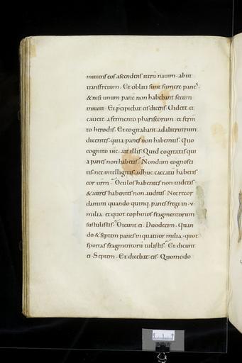 | Keywords: MCC-68515 Evangelistarium (Bernulphuscodex) (346).jpg Artwork nl Anonymous Zuid-Duitsland Reichenau OSB nl De kern van de boekband van de Bernulphuscodex wordt gevormd door twee eikenhouten platten De rug en het achterplat zijn overtrokken met zeemleer Het voorplat bestaat uit een enigszins verdiept rechthoekig middenveld omgeven door een brede rand In het middenveld bevindt zich een verguld zilveren filigraankruis met een verhoogd ingezwenkt achtkantig middenstuk en breed uitlopende armen Het filigraanwerk bestaat uit cirkelvormige uitwaaierende ranken met bolletjes aan de uiteinden en in het midden hier en daar kleine rozetjes Op het snijpunt van beide kruisarmen bevindt zich een ovale zwartblauw en grijs gekleurde onyx in de bovenarm een klassiek gesneden vrouwenkop van chalcedoon op de rechterarm een stuk donkerrood glas en beneden een bruin gestreepte agaat De bekleding van de linker kruisarm ontbreekt De lager gelegen velden tussen de kruisarmen zijn bekleed met dunne gouden platen Langs de randen hiervan is een parelrandje gestanst In het midden van de velden bevindt zich een medaillon met email-cloisonné De bovenste twee zijn voorzien van een diagonaal patroon met witte getrapte vierkantjes met rode stip tegen een donkerblauwe achtergrond Op de onderste twee is een stervormig respectievelijk concentrisch patroon aangebracht De aldaar toegepaste kleuren zijn translucide groen opaak wit geel en bruinpaars In de buitenste hoeken van de lager gelegen velden zijn ronde stenen in een vierkante zetting aangebracht Hiervan is slechts de opaal in de rechter bovenhoek bewaard gebleven In de overige hoeken is alleen nog de vierkante uitsparing te zien De brede rand is overtrokken met verguld zilveren stroken met grote rozetten die van elkaar gescheiden zijn door vier kleine stippelroosjes tussen twee evenwijdig lopende parelrandjes Aan de korte zijden van het voorplat ontbreekt de rozettenrand; slechts de spijkers waarmee ze waren vastgemaakt zijn nog te zien Aan de lange zijde ontbreekt een stuk uit de rand en wel links onder het midden Verdeeld over de nog aanwezige rozetten zijn vier alsengemmen en twee zilveren medaillons aangebracht Laatstgenoemde zijn versierd met een gezicht en bladwerk Vier medaillons met de evangelistensymbolen zijn op de hoeken van de brede rand aangebracht van links boven naar rechts onder betreft het de adelaar van Johannes de engel van Mattheus de gevleugelde os van Lucas en de gevleugelde leeuw van Marcus De banderol die de figuren dragen vermeldt de naam van de betreffende evangelist De naam van Marcus staat in spiegelbeeld Het woord Lucas is over andere letters gekrast De armen van het kruis de acht segmenten van het middenstuk alsmede de sierstukken zijn omlijst met een fijn geparelde gouden filigraandraad Techniek nog in te vullen volgens Korteweg zijn de medaillons met symbolen van Marcus en Lucas uit een graveerplaat gezaagd; rozetten in rand gestanst De sierlijst met rozetten is met behulp van kleine spijkertjes op de houten rand bevestigd Staat nog in te vullen Volgens Korteweg 1979 waren de medaillons met de symbolen van Johannes en Mattheus oorspronkelijk geëmailleerd De velden vertonen nog sporen van gekleurd email Volgens Steenbock 1965 waren het juist de medaillons met Lucas en Marcus Volgens Korteweg 1979 is het verguldsel van de stroken met rozetten enigszins afgesleten Onder de linkerzijde van het metaalwerk van het voorplat bevindt zich rode zijde; aan de smalle zijden van het voorplat ontbreken de rozettenranden slechts de spijkers waarmee ze waren vastgemaakt zijn nog te zien Aan de lange zijde links onder het midden ontbreekt een stuk uit de rand Van het chalcedonen vrouwenkopje ontbreekt de neus en is de kin beschadigd between u'1040' u'1200' u'1050' u'1499' nl perkament eikenhout zilver goud chalcedoon onyx glas agaat opaal Size 31 5 24 0 cm nl Hoogte 31 5cm Breedte 24 0cm Diepte 9 8cm Institution Museum Catharijneconvent object history exhibition history credit line nl Foto Museum Catharijneconvent Utrecht foto HetFotoAtelier Peter Rothengatter accession number Object number 68515 Inventory number ABM h3 place of creation https //www catharijneconvent nl/adlib/68515/ View this work on the website of Museum Catharijneconvent Museum Catharijneconvent Cc-zero <gallery> File MCC-68515_Evangelistarium_Bernulphuscodex_ 353 jpg File MCC-68515_Evangelistarium_Bernulphuscodex_ 412 jpg File MCC-68515_Evangelistarium_Bernulphuscodex_ 160 jpg File MCC-68515_Evangelistarium_Bernulphuscodex_ 6 jpg File MCC-68515_Evangelistarium_Bernulphuscodex_ 393 jpg File MCC-68515_Evangelistarium_Bernulphuscodex_ 89 jpg File MCC-68515_Evangelistarium_Bernulphuscodex_ 270 jpg File MCC-68515_Evangelistarium_Bernulphuscodex_ 425 jpg File MCC-68515_Evangelistarium_Bernulphuscodex_ 104 jpg File MCC-68515_Evangelistarium_Bernulphuscodex_ 291 jpg File MCC-68515_Evangelistarium_Bernulphuscodex_ 398 jpg File MCC-68515_Evangelistarium_Bernulphuscodex_ 339 jpg File MCC-68515_Evangelistarium_Bernulphuscodex_ 65 jpg File MCC-68515_Evangelistarium_Bernulphuscodex_ 403 jpg File MCC-68515_Evangelistarium_Bernulphuscodex_ 311 jpg File MCC-68515_Evangelistarium_Bernulphuscodex_ 159 jpg File MCC-68515_Evangelistarium_Bernulphuscodex_ 347 jpg File MCC-68515_Evangelistarium_Bernulphuscodex_ 453 jpg File MCC-68515_Evangelistarium_Bernulphuscodex_ 289 jpg File MCC-68515_Evangelistarium_Bernulphuscodex_ 273 jpg File MCC-68515_Evangelistarium_Bernulphuscodex_ 286 jpg File MCC-68515_Evangelistarium_Bernulphuscodex_ 236 jpg File MCC-68515_Evangelistarium_Bernulphuscodex_ 447 jpg File MCC-68515_Evangelistarium_Bernulphuscodex_ 227 jpg File MCC-68515_Evangelistarium_Bernulphuscodex_ 110 jpg File MCC-68515_Evangelistarium_Bernulphuscodex_ 139 jpg File MCC-68515_Evangelistarium_Bernulphuscodex_ 276 jpg File MCC-68515_Evangelistarium_Bernulphuscodex_ 10 jpg File MCC-68515_Evangelistarium_Bernulphuscodex_ 325 jpg File MCC-68515_Evangelistarium_Bernulphuscodex_ 154 jpg File MCC-68515_