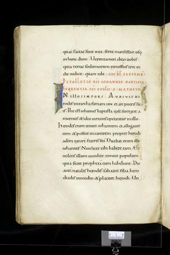| Keywords: MCC-68515 Evangelistarium (Bernulphuscodex) (380).jpg Artwork nl Anonymous Zuid-Duitsland Reichenau OSB nl De kern van de boekband van de Bernulphuscodex wordt gevormd door twee eikenhouten platten De rug en het achterplat zijn overtrokken met zeemleer Het voorplat bestaat uit een enigszins verdiept rechthoekig middenveld omgeven door een brede rand In het middenveld bevindt zich een verguld zilveren filigraankruis met een verhoogd ingezwenkt achtkantig middenstuk en breed uitlopende armen Het filigraanwerk bestaat uit cirkelvormige uitwaaierende ranken met bolletjes aan de uiteinden en in het midden hier en daar kleine rozetjes Op het snijpunt van beide kruisarmen bevindt zich een ovale zwartblauw en grijs gekleurde onyx in de bovenarm een klassiek gesneden vrouwenkop van chalcedoon op de rechterarm een stuk donkerrood glas en beneden een bruin gestreepte agaat De bekleding van de linker kruisarm ontbreekt De lager gelegen velden tussen de kruisarmen zijn bekleed met dunne gouden platen Langs de randen hiervan is een parelrandje gestanst In het midden van de velden bevindt zich een medaillon met email-cloisonné De bovenste twee zijn voorzien van een diagonaal patroon met witte getrapte vierkantjes met rode stip tegen een donkerblauwe achtergrond Op de onderste twee is een stervormig respectievelijk concentrisch patroon aangebracht De aldaar toegepaste kleuren zijn translucide groen opaak wit geel en bruinpaars In de buitenste hoeken van de lager gelegen velden zijn ronde stenen in een vierkante zetting aangebracht Hiervan is slechts de opaal in de rechter bovenhoek bewaard gebleven In de overige hoeken is alleen nog de vierkante uitsparing te zien De brede rand is overtrokken met verguld zilveren stroken met grote rozetten die van elkaar gescheiden zijn door vier kleine stippelroosjes tussen twee evenwijdig lopende parelrandjes Aan de korte zijden van het voorplat ontbreekt de rozettenrand; slechts de spijkers waarmee ze waren vastgemaakt zijn nog te zien Aan de lange zijde ontbreekt een stuk uit de rand en wel links onder het midden Verdeeld over de nog aanwezige rozetten zijn vier alsengemmen en twee zilveren medaillons aangebracht Laatstgenoemde zijn versierd met een gezicht en bladwerk Vier medaillons met de evangelistensymbolen zijn op de hoeken van de brede rand aangebracht van links boven naar rechts onder betreft het de adelaar van Johannes de engel van Mattheus de gevleugelde os van Lucas en de gevleugelde leeuw van Marcus De banderol die de figuren dragen vermeldt de naam van de betreffende evangelist De naam van Marcus staat in spiegelbeeld Het woord Lucas is over andere letters gekrast De armen van het kruis de acht segmenten van het middenstuk alsmede de sierstukken zijn omlijst met een fijn geparelde gouden filigraandraad Techniek nog in te vullen volgens Korteweg zijn de medaillons met symbolen van Marcus en Lucas uit een graveerplaat gezaagd; rozetten in rand gestanst De sierlijst met rozetten is met behulp van kleine spijkertjes op de houten rand bevestigd Staat nog in te vullen Volgens Korteweg 1979 waren de medaillons met de symbolen van Johannes en Mattheus oorspronkelijk geëmailleerd De velden vertonen nog sporen van gekleurd email Volgens Steenbock 1965 waren het juist de medaillons met Lucas en Marcus Volgens Korteweg 1979 is het verguldsel van de stroken met rozetten enigszins afgesleten Onder de linkerzijde van het metaalwerk van het voorplat bevindt zich rode zijde; aan de smalle zijden van het voorplat ontbreken de rozettenranden slechts de spijkers waarmee ze waren vastgemaakt zijn nog te zien Aan de lange zijde links onder het midden ontbreekt een stuk uit de rand Van het chalcedonen vrouwenkopje ontbreekt de neus en is de kin beschadigd between u'1040' u'1200' u'1050' u'1499' nl perkament eikenhout zilver goud chalcedoon onyx glas agaat opaal Size 31 5 24 0 cm nl Hoogte 31 5cm Breedte 24 0cm Diepte 9 8cm Institution Museum Catharijneconvent object history exhibition history credit line nl Foto Museum Catharijneconvent Utrecht foto HetFotoAtelier Peter Rothengatter accession number Object number 68515 Inventory number ABM h3 place of creation https //www catharijneconvent nl/adlib/68515/ View this work on the website of Museum Catharijneconvent Museum Catharijneconvent Cc-zero <gallery> File MCC-68515_Evangelistarium_Bernulphuscodex_ 353 jpg File MCC-68515_Evangelistarium_Bernulphuscodex_ 412 jpg File MCC-68515_Evangelistarium_Bernulphuscodex_ 160 jpg File MCC-68515_Evangelistarium_Bernulphuscodex_ 6 jpg File MCC-68515_Evangelistarium_Bernulphuscodex_ 393 jpg File MCC-68515_Evangelistarium_Bernulphuscodex_ 89 jpg File MCC-68515_Evangelistarium_Bernulphuscodex_ 270 jpg File MCC-68515_Evangelistarium_Bernulphuscodex_ 425 jpg File MCC-68515_Evangelistarium_Bernulphuscodex_ 104 jpg File MCC-68515_Evangelistarium_Bernulphuscodex_ 291 jpg File MCC-68515_Evangelistarium_Bernulphuscodex_ 398 jpg File MCC-68515_Evangelistarium_Bernulphuscodex_ 339 jpg File MCC-68515_Evangelistarium_Bernulphuscodex_ 65 jpg File MCC-68515_Evangelistarium_Bernulphuscodex_ 403 jpg File MCC-68515_Evangelistarium_Bernulphuscodex_ 311 jpg File MCC-68515_Evangelistarium_Bernulphuscodex_ 159 jpg File MCC-68515_Evangelistarium_Bernulphuscodex_ 347 jpg File MCC-68515_Evangelistarium_Bernulphuscodex_ 453 jpg File MCC-68515_Evangelistarium_Bernulphuscodex_ 289 jpg File MCC-68515_Evangelistarium_Bernulphuscodex_ 273 jpg File MCC-68515_Evangelistarium_Bernulphuscodex_ 286 jpg File MCC-68515_Evangelistarium_Bernulphuscodex_ 236 jpg File MCC-68515_Evangelistarium_Bernulphuscodex_ 447 jpg File MCC-68515_Evangelistarium_Bernulphuscodex_ 227 jpg File MCC-68515_Evangelistarium_Bernulphuscodex_ 110 jpg File MCC-68515_Evangelistarium_Bernulphuscodex_ 139 jpg File MCC-68515_Evangelistarium_Bernulphuscodex_ 276 jpg File MCC-68515_Evangelistarium_Bernulphuscodex_ 10 jpg File MCC-68515_Evangelistarium_Bernulphuscodex_ 325 jpg File MCC-68515_Evangelistarium_Bernulphuscodex_ 154 jpg File MCC-68515_