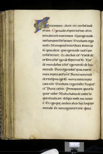 | Keywords: MCC-68515 Evangelistarium (Bernulphuscodex) (117).jpg Artwork nl Anonymous Zuid-Duitsland Reichenau OSB nl De kern van de boekband van de Bernulphuscodex wordt gevormd door twee eikenhouten platten De rug en het achterplat zijn overtrokken met zeemleer Het voorplat bestaat uit een enigszins verdiept rechthoekig middenveld omgeven door een brede rand In het middenveld bevindt zich een verguld zilveren filigraankruis met een verhoogd ingezwenkt achtkantig middenstuk en breed uitlopende armen Het filigraanwerk bestaat uit cirkelvormige uitwaaierende ranken met bolletjes aan de uiteinden en in het midden hier en daar kleine rozetjes Op het snijpunt van beide kruisarmen bevindt zich een ovale zwartblauw en grijs gekleurde onyx in de bovenarm een klassiek gesneden vrouwenkop van chalcedoon op de rechterarm een stuk donkerrood glas en beneden een bruin gestreepte agaat De bekleding van de linker kruisarm ontbreekt De lager gelegen velden tussen de kruisarmen zijn bekleed met dunne gouden platen Langs de randen hiervan is een parelrandje gestanst In het midden van de velden bevindt zich een medaillon met email-cloisonné De bovenste twee zijn voorzien van een diagonaal patroon met witte getrapte vierkantjes met rode stip tegen een donkerblauwe achtergrond Op de onderste twee is een stervormig respectievelijk concentrisch patroon aangebracht De aldaar toegepaste kleuren zijn translucide groen opaak wit geel en bruinpaars In de buitenste hoeken van de lager gelegen velden zijn ronde stenen in een vierkante zetting aangebracht Hiervan is slechts de opaal in de rechter bovenhoek bewaard gebleven In de overige hoeken is alleen nog de vierkante uitsparing te zien De brede rand is overtrokken met verguld zilveren stroken met grote rozetten die van elkaar gescheiden zijn door vier kleine stippelroosjes tussen twee evenwijdig lopende parelrandjes Aan de korte zijden van het voorplat ontbreekt de rozettenrand; slechts de spijkers waarmee ze waren vastgemaakt zijn nog te zien Aan de lange zijde ontbreekt een stuk uit de rand en wel links onder het midden Verdeeld over de nog aanwezige rozetten zijn vier alsengemmen en twee zilveren medaillons aangebracht Laatstgenoemde zijn versierd met een gezicht en bladwerk Vier medaillons met de evangelistensymbolen zijn op de hoeken van de brede rand aangebracht van links boven naar rechts onder betreft het de adelaar van Johannes de engel van Mattheus de gevleugelde os van Lucas en de gevleugelde leeuw van Marcus De banderol die de figuren dragen vermeldt de naam van de betreffende evangelist De naam van Marcus staat in spiegelbeeld Het woord Lucas is over andere letters gekrast De armen van het kruis de acht segmenten van het middenstuk alsmede de sierstukken zijn omlijst met een fijn geparelde gouden filigraandraad Techniek nog in te vullen volgens Korteweg zijn de medaillons met symbolen van Marcus en Lucas uit een graveerplaat gezaagd; rozetten in rand gestanst De sierlijst met rozetten is met behulp van kleine spijkertjes op de houten rand bevestigd Staat nog in te vullen Volgens Korteweg 1979 waren de medaillons met de symbolen van Johannes en Mattheus oorspronkelijk geëmailleerd De velden vertonen nog sporen van gekleurd email Volgens Steenbock 1965 waren het juist de medaillons met Lucas en Marcus Volgens Korteweg 1979 is het verguldsel van de stroken met rozetten enigszins afgesleten Onder de linkerzijde van het metaalwerk van het voorplat bevindt zich rode zijde; aan de smalle zijden van het voorplat ontbreken de rozettenranden slechts de spijkers waarmee ze waren vastgemaakt zijn nog te zien Aan de lange zijde links onder het midden ontbreekt een stuk uit de rand Van het chalcedonen vrouwenkopje ontbreekt de neus en is de kin beschadigd between u'1040' u'1200' u'1050' u'1499' nl perkament eikenhout zilver goud chalcedoon onyx glas agaat opaal Size 31 5 24 0 cm nl Hoogte 31 5cm Breedte 24 0cm Diepte 9 8cm Institution Museum Catharijneconvent object history exhibition history credit line nl Foto Museum Catharijneconvent Utrecht foto HetFotoAtelier Peter Rothengatter accession number Object number 68515 Inventory number ABM h3 place of creation https //www catharijneconvent nl/adlib/68515/ View this work on the website of Museum Catharijneconvent Museum Catharijneconvent Cc-zero <gallery> File MCC-68515_Evangelistarium_Bernulphuscodex_ 353 jpg File MCC-68515_Evangelistarium_Bernulphuscodex_ 412 jpg File MCC-68515_Evangelistarium_Bernulphuscodex_ 160 jpg File MCC-68515_Evangelistarium_Bernulphuscodex_ 6 jpg File MCC-68515_Evangelistarium_Bernulphuscodex_ 393 jpg File MCC-68515_Evangelistarium_Bernulphuscodex_ 89 jpg File MCC-68515_Evangelistarium_Bernulphuscodex_ 270 jpg File MCC-68515_Evangelistarium_Bernulphuscodex_ 425 jpg File MCC-68515_Evangelistarium_Bernulphuscodex_ 104 jpg File MCC-68515_Evangelistarium_Bernulphuscodex_ 291 jpg File MCC-68515_Evangelistarium_Bernulphuscodex_ 398 jpg File MCC-68515_Evangelistarium_Bernulphuscodex_ 339 jpg File MCC-68515_Evangelistarium_Bernulphuscodex_ 65 jpg File MCC-68515_Evangelistarium_Bernulphuscodex_ 403 jpg File MCC-68515_Evangelistarium_Bernulphuscodex_ 311 jpg File MCC-68515_Evangelistarium_Bernulphuscodex_ 159 jpg File MCC-68515_Evangelistarium_Bernulphuscodex_ 347 jpg File MCC-68515_Evangelistarium_Bernulphuscodex_ 453 jpg File MCC-68515_Evangelistarium_Bernulphuscodex_ 289 jpg File MCC-68515_Evangelistarium_Bernulphuscodex_ 273 jpg File MCC-68515_Evangelistarium_Bernulphuscodex_ 286 jpg File MCC-68515_Evangelistarium_Bernulphuscodex_ 236 jpg File MCC-68515_Evangelistarium_Bernulphuscodex_ 447 jpg File MCC-68515_Evangelistarium_Bernulphuscodex_ 227 jpg File MCC-68515_Evangelistarium_Bernulphuscodex_ 110 jpg File MCC-68515_Evangelistarium_Bernulphuscodex_ 139 jpg File MCC-68515_Evangelistarium_Bernulphuscodex_ 276 jpg File MCC-68515_Evangelistarium_Bernulphuscodex_ 10 jpg File MCC-68515_Evangelistarium_Bernulphuscodex_ 325 jpg File MCC-68515_Evangelistarium_Bernulphuscodex_ 154 jpg File MCC-68515_