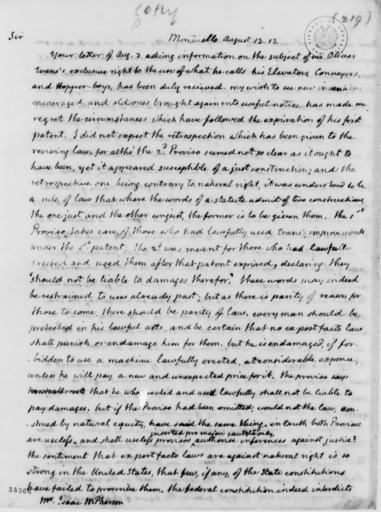 | Keywords: McPherson Letter, 1813.jpg en Letter from Thomas Jefferson to Isaac McPherson 1813 discussing his views on intellectual property and the validity of Oliver Evans' patents 2014-04-10 11 30 04 http //memory loc gov/master/mss/mtj/mtj1/046/1000/1057 jpg Library of Congress Thomas Jefferson PD-old-100 Uploaded with UploadWizard Letters by Thomas Jefferson |