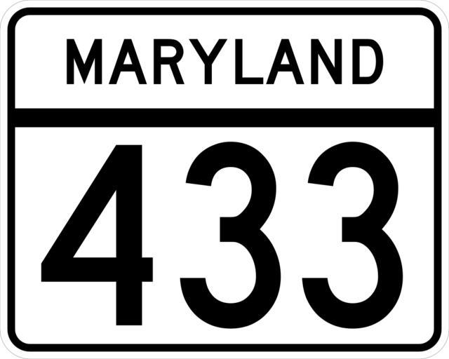 Keywords: MD Route 433.svg A Maryland Route 433 route marker Made according to http //www marylandroads com/businesswithsha/bizstdsspecs/desmanualstdpub/publicationsonline/oots/pdf/M1-5 pdf using Inkscape Jeff02 Maryland State Highway shields 433