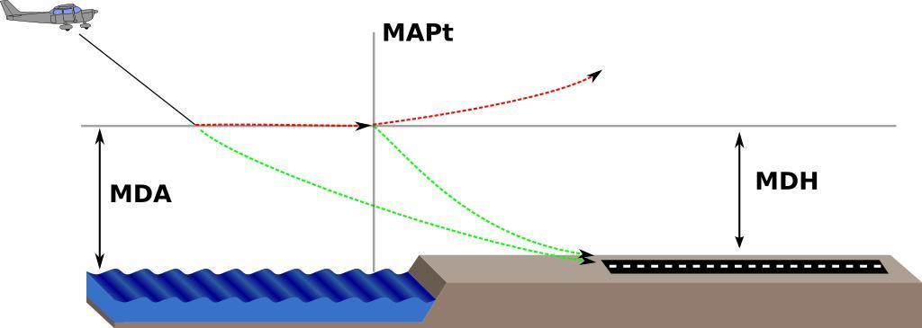 | Keywords: MDA and MDH.svg Instrument approach MDA minimum descent altitude MDH minimum descent height MAPt missed approach point green line runway in sight †’ continue descent below MDA/H red line runway not in sight before reaching MAPt †’ hold altitude when reaching MAPt †’ missed approach/go around Mindestsinkflughöhe MDA minimum descent altitude MDH minimum descent height MAPt missed approach point Fehlanflugpunkt grüne Linie Landebahn/-befeuerung in Sicht †’ weiter sinken rote Linie Landebahn/-befeuerung noch nicht in Sicht MAPt noch nicht erreicht †’ Höhe halten wenn MAPt erreicht und Landebahn/-befeuerung noch nicht in Sicht †’ missed approach/Durchstarten own incorporating C 172 line drawing svg 2010-04-10 C 172 line drawing svg Werneuchen everything else El Grafo <span class signature-talk >talk</span> Decision altitude and decision height svg Decision altitude and decision height CC-0 Air navigation diagrams Aircraft altitude diagrams Files by User El Grafo Landings in aviation ILS |