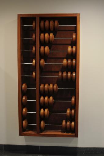 | Keywords: abacus beads addition add sum computation indoor photo border In this exercise I'm showing how to add the number 123456789 to itself on the giant Soda Hall abacus. I add in right-to-left order, first adding 9 in the ones column, then 8 in the tens column, etc. This first step shows 123456789 entered on the abacus. CC0 waiver: To the extent possible under law, I waive all copyright and related or neighboring rights to this work. In this exercise I'm showing how to add the number 123456789 to itself on the giant Soda Hall abacus. I add in right-to-left order, first adding 9 in the ones column, then 8 in the tens column, etc. This first step shows 123456789 entered on the abacus. CC0 waiver: To the extent possible under law, I waive all copyright and related or neighboring rights to this work. |