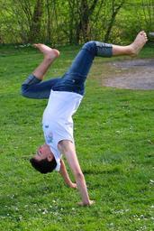 Keywords: meadow acrobatics boy young people upside down dynamic
