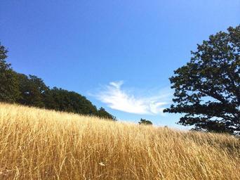 Keywords: meadow field cloud grass tree low blue sky landscape nature summer wispy country