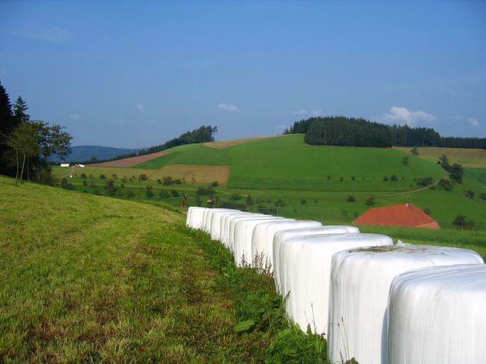 Keywords: meadow hay straw black forest germany hill mountain trees grass bale harvest