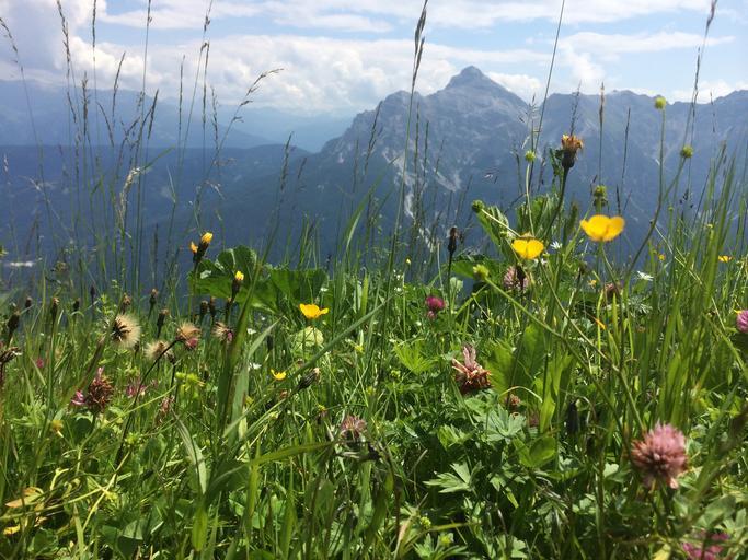 Keywords: meadow mountains buttercup klee red clover alpine flowers spring summer meadow