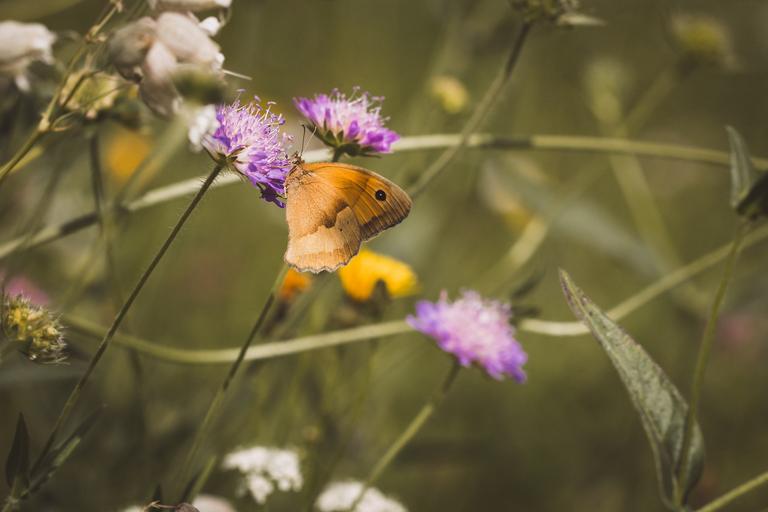 Keywords: meadow natural lawn summer meadow summer nature pointed flower plant flower meadow brown blossom bloom butterfly twilight wild plant edelfalter