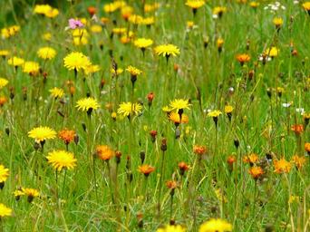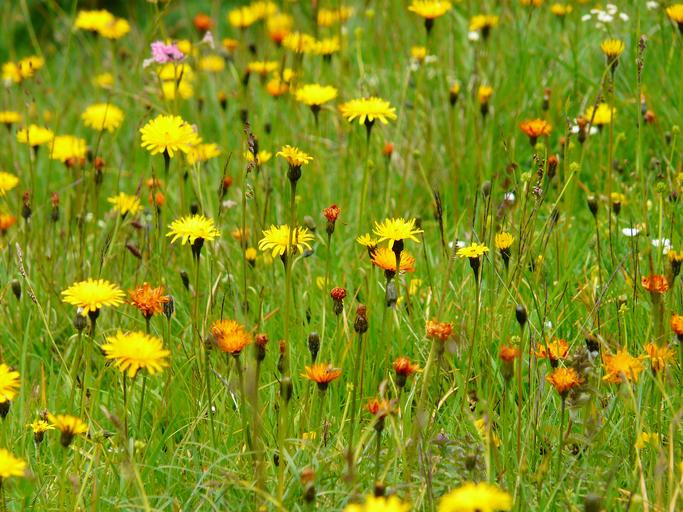 Keywords: meadow wildflowers pointed flower plant garden spring nature idyll grasses blades of grass yellow flower blossom bloom bloom flora mountain meadow