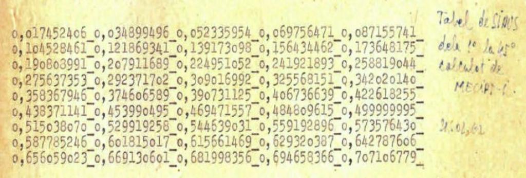 MAKE A MEME View Large Image MECIPT-1 sinus table.jpg en Sinus table “ output of MECIPT-1 test code ro Tabelă sinus “ rezultatele programului de testare MECIPT-1 1962-02-21 Vasile Baltac http //www atic org ro/ktml2/files/uploads/MECIPT-IPT pdf MECIPT “ MaÈ™ină ...