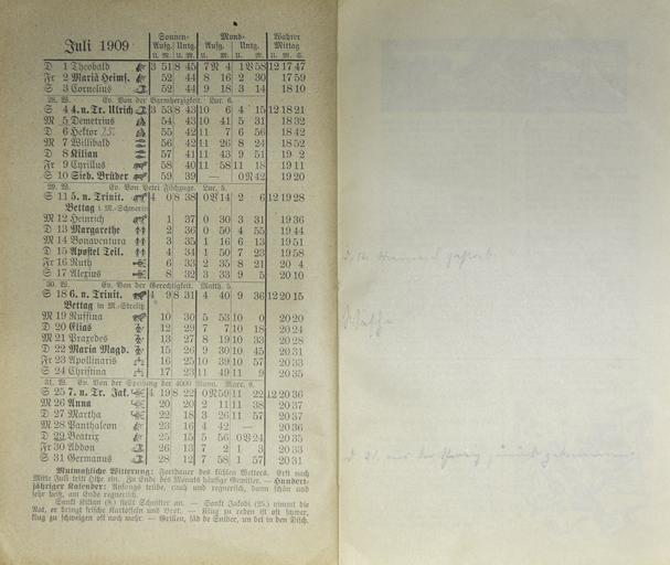 | Keywords: Mecklenburgischer Kalender 1909 015.jpg Großherzoglich Mecklenburg-Schwerinscher und Mecklenburg Strelitzscher Kalender für 1909 Hinstorff'sche Verlagsanstalt Wismar own photo of item in own collection 1909 anonymous PD-old-100 Mecklenburgischer Kalender 1909 Photos by User AndreasPraefcke |