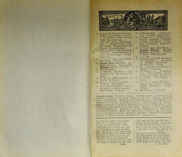 | Keywords: Mecklenburgischer Kalender 1909 022.jpg Großherzoglich Mecklenburg-Schwerinscher und Mecklenburg Strelitzscher Kalender für 1909 Hinstorff'sche Verlagsanstalt Wismar own photo of item in own collection 1909 anonymous PD-old-100 Mecklenburgischer Kalender 1909 Photos by User AndreasPraefcke |