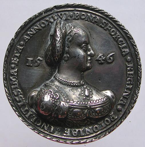 Keywords: Medal of Bona Sforza 1546.jpg Bona Sforza 1494-1557 Queen of Poland and Duchess of Bari 1546 metalwork Φ mm Institution National Museum Kraków Kraków http //www czapscy org pl/num_moneta php id 126 BONA SFORCIA REGINA POLONIAE INCLITISSIMA ETA ANNO XLVI Giovanni Maria Padovano Bona Sforza 1546 medals Profile medals of women facing right PD-old-100 |
