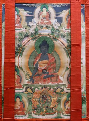 Keywords: Medicine Buddha, 1644-1911 AD, thangka - Sichuan University Museum - Chengdu, China - DSC06197.jpg en Exhibit in the Sichuan University Museum 四 大学博物馆 - Chengdu Sichuan China Photography was permitted in the museum without restriction This work is old enough so that it is in the public domain 2015-09-26 02 04 45 own Daderot other versions PD-old-100 cc-zero Thangka in the Sichuan University Museum Bhaisajyaguru |