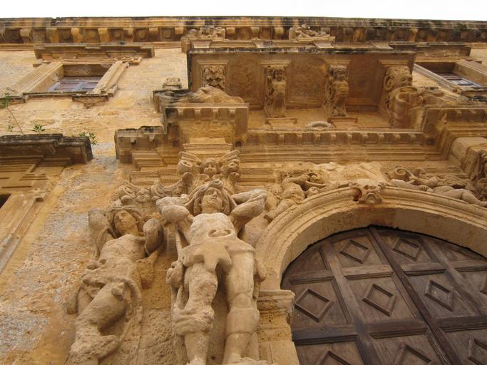Keywords: mediterranean tufa fresco facade brown architecture relieff historically church church portal mazara del vallo sicily