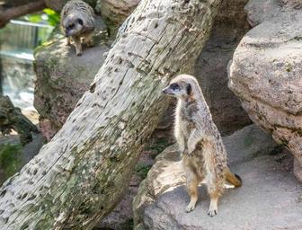 Keywords: meerkat cute mammal fur furry face standing brown small outdoors nature