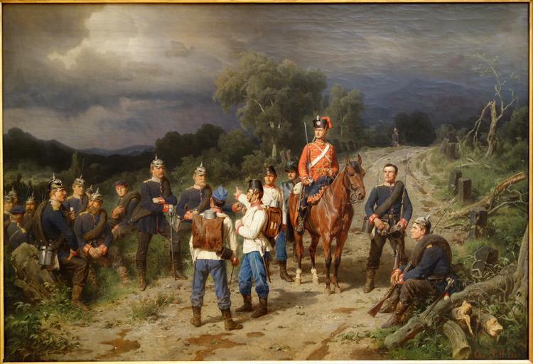 | Keywords: Meeting of the Austrian and Prussian Commanders by Christian Sell, 1869, oil on canvas - Chazen Museum of Art - DSC02198.JPG en Exhibit in the Chazen Museum of Art University of Wisconsin-Madison Madison Wisconsin USA This artwork is old enough so that it is in the public domain Photography was permitted in the museum without restriction 2013-07-21 13 42 12 own Daderot cc-zero European paintings in the Chazen Museum of Art Uploaded with UploadWizard Christian Sell | ||||