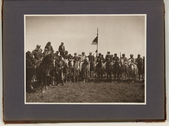 | Keywords: Meetings of British, Arab, and Bedouin officials in Amman, Jordan, April 1921 - File 30.tif en Photographs show meetings between Arab Bedouin and British officials around April 17-27 1921 at Amir Abdullah ibn Hussein's camp at Amman Jordan During these meetings British High Commissioner Herbert Samuel proclaimed Amir Abdullah as the ruler of Transjordan under British protection Among the persons depicted are Amir Abdullah John D Whiting possibly Sheik Sultan of the Belka Sultan ibn 'Ali id Diab ul 'Adwan Amir Shaker bin Zeid future Regent of Transjordan Bedouin chief Auda Abu Tayi Sheik Majid Pasha el Adwan Herbert Samuel British civil administrator Wyndham Deedes British diplomat Albert Abramson T E Lawrence Lawrence of Arabia and possibly Iraq civil administrator Gertrude Bell Also shown are horse racing an airplane landing at Abdullah's camp Circassian leaders Abudullah's bodyguard on camels and Herbert Samuel reading his proclamation of Abdullah as leader of Transjordan Reproduction Number LC-DIG-ppmsca-15304 digital files of original photos LC-DIG-ppmsca-15305 digital files of album pages Rights Advisory No known restrictions on publication Access Advisory For reference access please use the digital images in the online catalog to preserve the fragile original items Notes Photographs were created by the photographers of the American Colony Photo Department located in Jerusalem Founded in the late 1890s by Elijah Meyers the photo agency was headed during its heyday ca 1903-1933 by Lewis Larsson whose staff photographers included Erik Lind Lars Lind Furman Baldwin and G Eric Matson It transitioned into the Matson Photo Service around 1940 with photography by Matson Hanna Safieh Joseph H Giries and others John D Whiting contributed periodically to the work of both agencies The images in this album were probably taken by Lewis Larsson and/or Eric Matson For more information see http //hdl loc gov/loc pnp/pp matpc and http //www loc gov/rr/print/coll/629_whiting html Some caption information for these photographs based on information from matching negatives in the G Eric and Edith Matson Photograph Collection LC-M32-1942 LC-M32-1952 LC-M32-1951 LC-M32-1954 LC-M32-1956 M32-1957 and LC-M32-50280-x Album unpaginated album page numbers supplied by Library staff Pages 1-2 and verso of each page are blank One unattached photograph was found with the album and is stored with it Photograph is a portrait of a Jordanian man in traditional dress Blind stamp Hagop Berberian Amman Stamped on verso Copyright reserved By appointment to H M the King photographers Hagop Berberian Son More information about the events and people depicted in the album are available in the John D Whiting Supplementary Archive Box 1 LOT title devised by Library staff John D Whiting's diaries correspondence and other materials are located in the Library of Congress Manuscript Division Papers of John D Whiting Forms part of Visual materials from the papers of John D Whiting Library of Congress Transfer; Manuscript Division; 2006; DLC/PP-2006 051 29 Subjects Samuel Herbert Louis Samuel --Viscount --1870-1963 Lawrence T E -- Thomas Edward --1888-1935 Abdullah --King of Jordan --1882-1951 Deedes Wyndham Henry --Sir --1883-1956 Shākir ibn Zayd --Prince son of Zayd ibn Fawwāz Amir of Ṭāʾif --1885-1934 Bell Gertrude Lowthian --1868-1926 Jordan--History--1919-1946 American Colony Jerusalem --People--1920-1930 British--Jordan--Amman--1920-1930 Arabs--Jordan--Amman--1920-1930 Bedouins--Jordan--Amman--1920-1930 Circassians--Jordan--Amman--1920-1930 Tribal chiefs--Jordan--Amman--1920-1930 Meetings--Jordan--Amman--1920-1930 Camps--Jordan--Amman--1920-1930 Government officials--Jordan--Amman--1920-1930 Biplanes--Jordan--Amman--1920-1930 Proclamations--Jordan--Amman--1920-1930 April 17-27 1921 http //www loc gov/pictures/item/mpc2010001545/PP/resource/ Whiting John D John David 1882-1951 photographer Larsson Lewis photographer Matson G Eric Gästgifvar Eric 1888-1977 photographer other versions Wikimedia Levant - GLAM PD-Jordan 1921 Herbert Samuel and Amir Abdullah meetings |