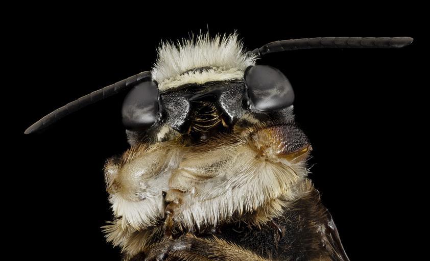 Keywords: biml usgs droege usgsbiml zerene stacker zerenestacker stackshot bug bugs bee bees pollinator pollinators animal animals animalia arthropod arthropods arthropoda insect insects insecta hymenoptera aculeata anthophila apoidea megachilidae megachilinae megachilini megachile megachile xylocopoides megachilexylocopoides taxonomy:binomial=megachile xylocopoides taxonomy:binomial=megachilexylocopoides eastern neck national wildlife refuge easternnecknationalwildliferefuge usfws fws fish and wildlife service fishandwildlifeservice island cossack cossack dancer cossackdancer black background As you can see from the tattered edges of the wings...this is an old bee, meaning it has been out and about for about 5 weeks. This is also a male, one could count the antennal segments (13 in males, 12 in females) but you can also tell by the greatly expanded white front legs, these are used to cover the females eyes during mating.... they also give this bee a Cossack Dancer sort of feel, though that would be anthropomorphisming a bit too much. Also the jet black female of this species is the target of the previous bee, Coelioxys dolichos. Collected at Eastern Neck National Wildlife Refuge, Chesapeake Bay, Maryland. ~~~~~~~~~~{{{{{{0}}}}}}~~~~~~~~~~ All photographs are public domain, feel free to download and use as you wish. Photography Information: Canon Mark II 5D, Zerene Stacker, Stackshot Sled, 65mm Canon MP-E 1-5X macro lens, Twin Macro Flash in Styrofoam Cooler, F5.0, ISO 100, Shutter Speed 200 The murmuring of bees has ceased; But murmuring of some Posterior, prophetic, Has simultaneous come,-- The lower metres of the year, When nature's laugh is done,-- The Revelations of the book Whose Genesis is June. -Emily Dickinson Want some Useful Links to the Techniques We Use? Well now here you go Citizen: Basic USGSBIML set up: www.youtube.com/watch?v=S-_yvIsucOY USGSBIML Photoshopping Technique: Note that we now have added using the burn tool at 50% opacity set to shadows to clean up the halos that bleed into the black background from "hot" color sections of the picture. www.youtube.com/watch?v=Bdmx_8zqvN4 PDF of Basic USGSBIML Photography Set Up: ftp://ftpext.usgs.gov/pub/er/md/laurel/Droege/How%20to%20Take%20MacroPhotographs%20of%20Insects%20BIML%20Lab2.pdf Google Hangout Demonstration of Techniques: plus.google.com/events/c5569losvskrv2nu606ltof8odo or www.youtube.com/watch?v=4c15neFttoU Excellent Technical Form on Stacking: www.photomacrography.net/ Contact information: Sam Droege sdroege@usgs.gov 301 497 5840 As you can see from the tattered edges of the wings...this is an old bee, meaning it has been out and about for about 5 weeks. This is also a male, one could count the antennal segments (13 in males, 12 in females) but you can also tell by the greatly expanded white front legs, these are used to cover the females eyes during mating.... they also give this bee a Cossack Dancer sort of feel, though that would be anthropomorphisming a bit too much. Also the jet black female of this species is the target of the previous bee, Coelioxys dolichos. Collected at Eastern Neck National Wildlife Refuge, Chesapeake Bay, Maryland. ~~~~~~~~~~{{{{{{0}}}}}}~~~~~~~~~~ All photographs are public domain, feel free to download and use as you wish. Photography Information: Canon Mark II 5D, Zerene Stacker, Stackshot Sled, 65mm Canon MP-E 1-5X macro lens, Twin Macro Flash in Styrofoam Cooler, F5.0, ISO 100, Shutter Speed 200 The murmuring of bees has ceased; But murmuring of some Posterior, prophetic, Has simultaneous come,-- The lower metres of the year, When nature's laugh is done,-- The Revelations of the book Whose Genesis is June. -Emily Dickinson Want some Useful Links to the Techniques We Use? Well now here you go Citizen: Basic USGSBIML set up: www.youtube.com/watch?v=S-_yvIsucOY USGSBIML Photoshopping Technique: Note that we now have added using the burn tool at 50% opacity set to shadows to clean up the halos that bleed into the black background from "hot" color sections of the picture. www.youtube.com/watch?v=Bdmx_8zqvN4 PDF of Basic USGSBIML Photography Set Up: ftp://ftpext.usgs.gov/pub/er/md/laurel/Droege/How%20to%20Take%20MacroPhotographs%20of%20Insects%20BIML%20Lab2.pdf Google Hangout Demonstration of Techniques: plus.google.com/events/c5569losvskrv2nu606ltof8odo or www.youtube.com/watch?v=4c15neFttoU Excellent Technical Form on Stacking: www.photomacrography.net/ Contact information: Sam Droege sdroege@usgs.gov 301 497 5840