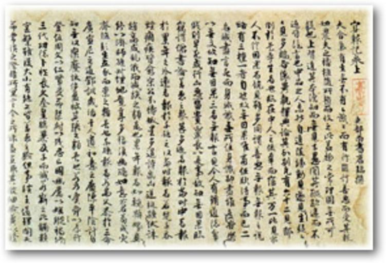 | Keywords: Meihoki.jpg en Meihōki 冥報記 Collection of Buddhist tales; oldest extant manuscript of this work Part of three scrolls ink on paper height 28 2 cm 11 1 in lengths 339 3 cm 133 6 in 557 7 cm 219 6 in and 672 7 cm 264 8 in for scrolls 1 2 and 3 Located at Kōzan-ji Kyoto Japan http //www kosanji com/national_treasure html Author late Tang Dynasty PD-Art National Treasures of Japan writings |
