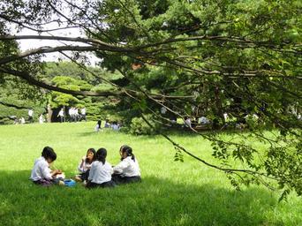Keywords: Meiji Shrine - DSC05018.JPG Meiji Shrine Shinjuku Tokyo Japan I took this photograph 2011-09-10 21 50 39 Daderot Public domain Meiji Shrine Picnics Sitting on ground