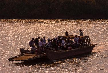 Keywords: mekong river ferry river abendstimmung boot ship water shipping vietnam cross